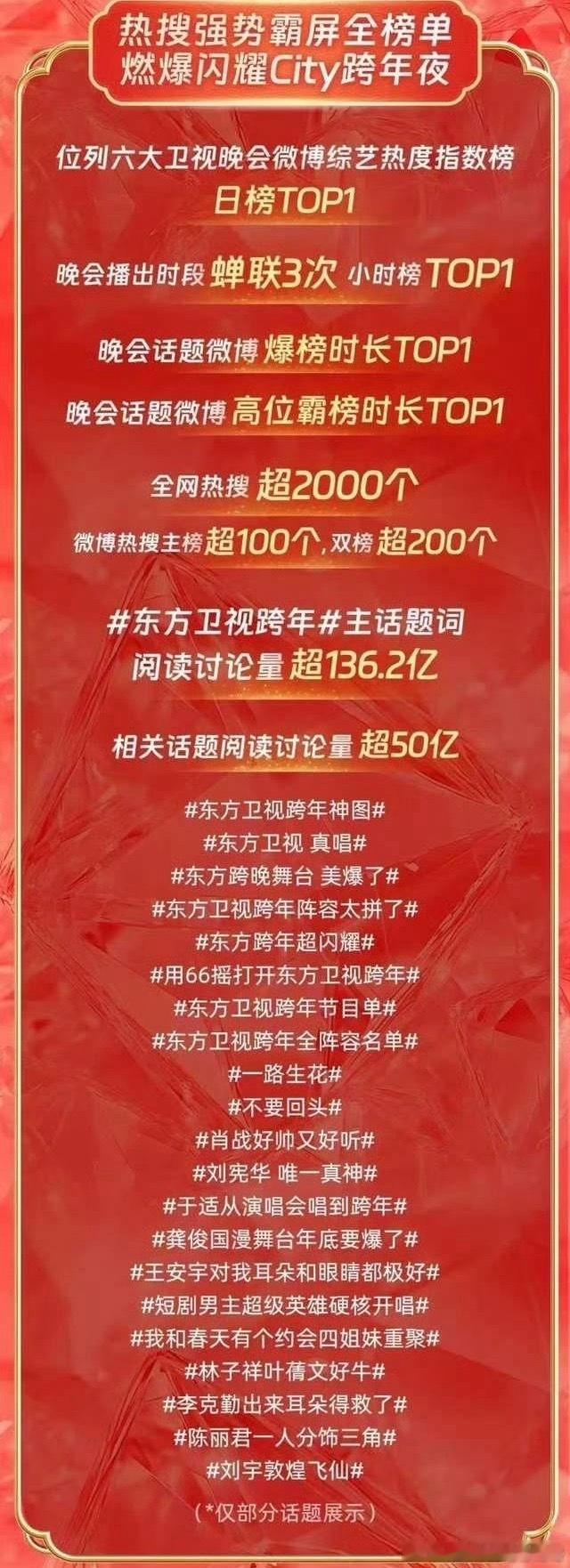 东方卫视跨年晚会官方战报:cvb收视率排名所有卫视跨年晚会第二。同比去年收视逆势