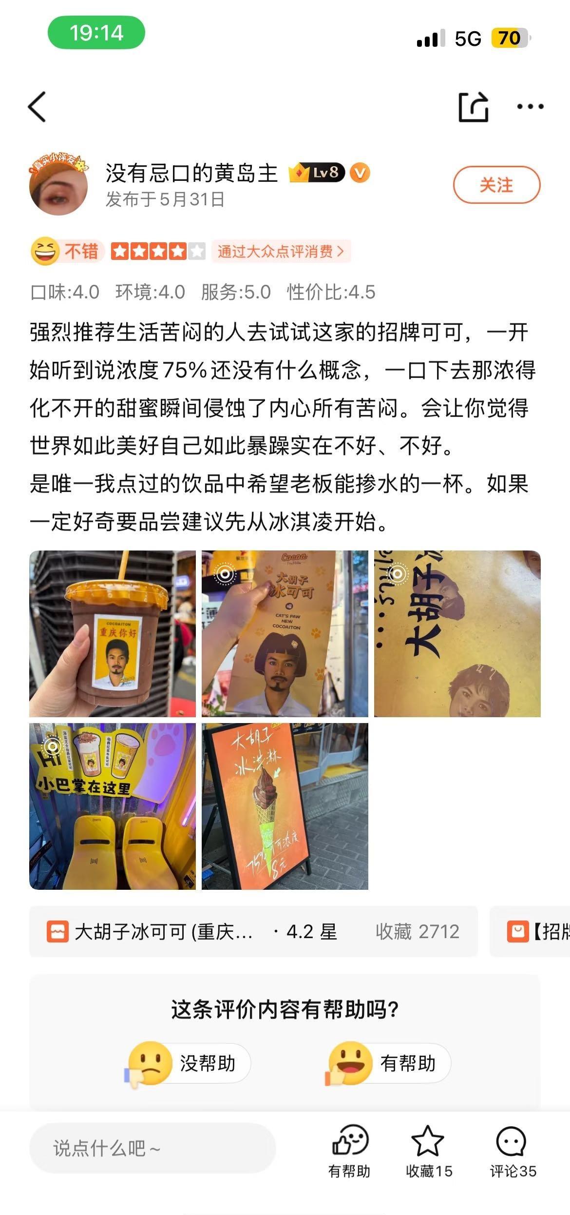 奶茶点了全糖太甜怎么办? 本来只是想找找奶茶点太甜怎么办 结果在dp 上刷到了一个神仙店铺测评 有网友说他家的招牌可可"甜到想让老板加水",点开评论区更是笑到打鸣,一整个给我治愈了[大笑] 感觉我能在这里刷一天,比追综艺还上头 对了,我还发现上面能查年度打卡记录,快去看看你今年喝了多少杯快乐水! 我的快乐源泉 搞笑日常 评友节 真评友不正经颁奖大赏 莫名其妙击中笑点 搞笑大众点评 评价 奶茶