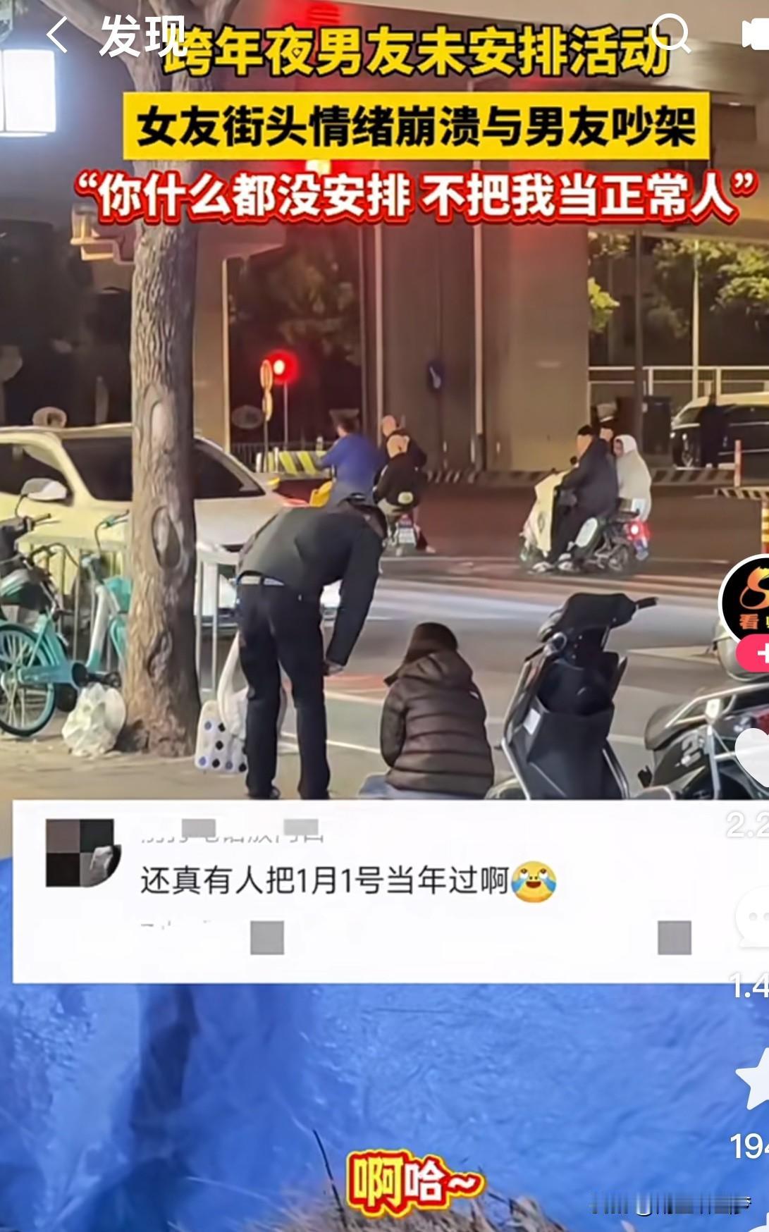 🔥 破防了!跨年夜男友啥也没安排,女友街头崩溃大哭:“你根本不把我当正常人!” 就因为没安排活动,她从市中心打车四十多分钟冲到郊区,却发现对方连一点计划都没有。“为什么每次都是我来找你?为什么啊?”这句话扎穿了多少在恋爱里单方面付出的人… 有人说“找个情绪稳定的对象很重要”,也有人说“换成我直接装不认识走人”。 真有人会过元旦啊[震惊] 其实哪有什么该不该过节,不过是想要被在乎、被记得的那份心意罢了。 你在感情里也曾这样失望过吗?