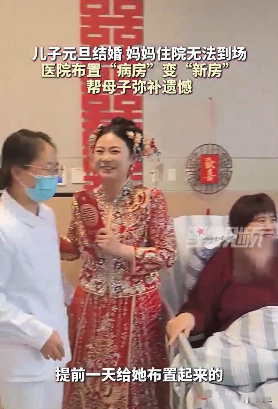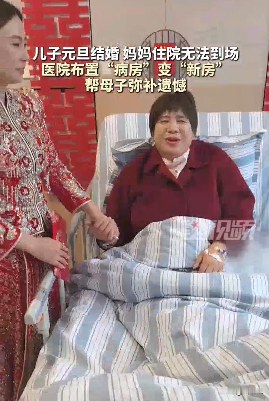 浙江,一对新人选择元旦当天结婚,但由于母亲生病住院,没办法前往婚礼现场,于是新郎新娘联系医院,将病房改成了新房。本来是个温馨的事情,但不少网友却认为是胡闹 普通人可能就选择延后或者简单录个视频给老人看看,但这对新人没打算让母亲缺席这个大日子,他们干脆联系了医院,把病房布置成了临时的新房。病房里贴上了喜字,摆上了鲜花和茶具,气氛温馨而不突兀,他们直接在病床边为李阿姨敬茶 这事被发到网上,不少人觉得胡闹:病房是治病的地方,这么弄不合适。还有人问,日子就不能改吗?非得赶这一天? 我倒觉得,外人没必要替他们判断对错 结婚的日子,往往早就定好了,酒店、亲友、各项安排,临时改动并不容易。更重要的是,母亲生病,儿子儿媳最清楚她的状况和心愿。他们选择把婚礼“搬”到病房,不是折腾,而是不想让母亲缺席这个重要时刻。医院能同意布置,也说明情况特殊,事先有沟通,并非蛮干 生活里很多事,不是非黑即白。病房是治病的地方,但亲情和陪伴,有时也是一种“药”。母亲躺在病床上,能看到子女成家,喝上一杯媳妇茶,心里那份踏实和安慰,外人可能很难完全体会 人家医院没说什么,一家人高高兴兴的,外人又何必质疑担心呢
