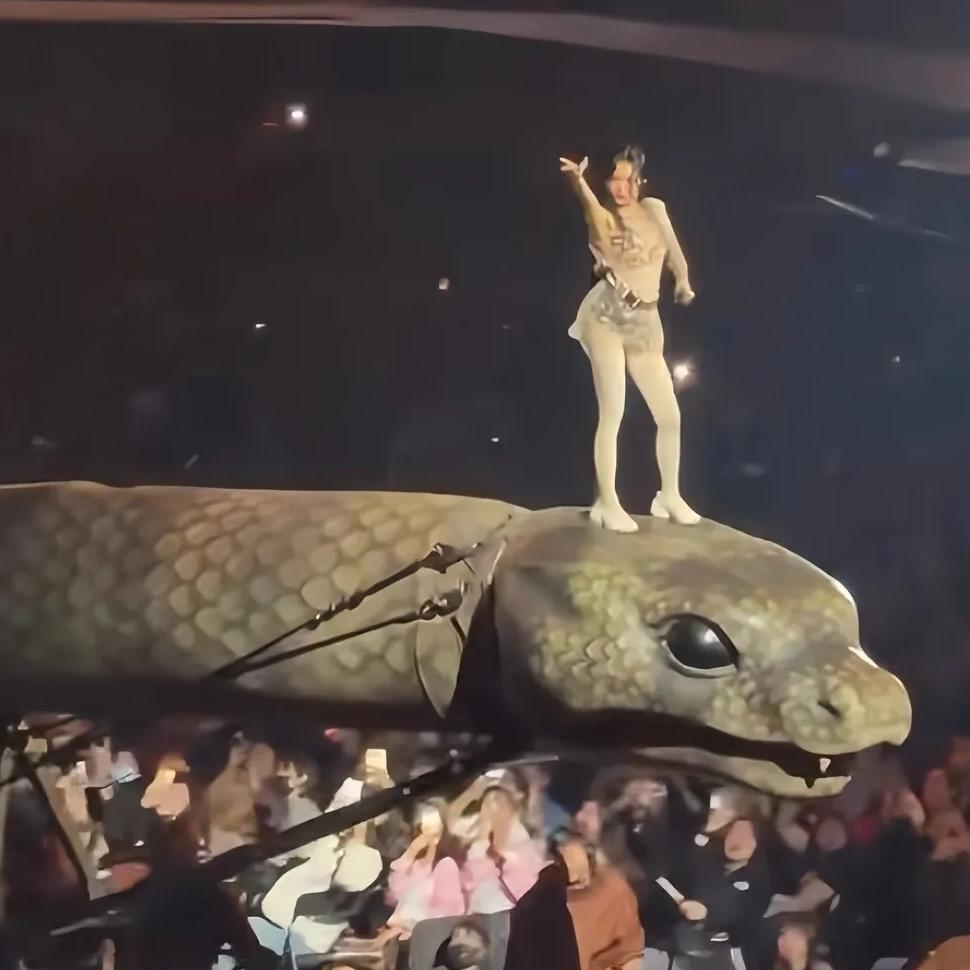 家人们,蔡依林专心搞起事业来,那飒劲简直无人能敌!最近她在台北的演唱会,直接给观众来了个“王炸”开场。 演唱会一开始,全场灯光暗下,大家都屏息凝神,心里直犯嘀咕:蔡依林这次到底会整出啥新花样?就在这时,一条巨大的“蛇”缓缓出现在舞台中央,那逼真的造型,让人忍不住倒吸一口凉气。而蔡依林,就像女王降临一般,稳稳地骑在巨蛇之上,霸气开场! 紧接着,她唱起那首《美杜莎》,歌声嘹亮又充满力量,和巨蛇的造型完美搭配,仿佛真的把美杜莎的神秘与魅力展现得淋漓尽致。现场观众瞬间沸腾,尖叫声都快把屋顶掀翻。 这场演唱会,蔡依林用实力证明了自己“亚洲舞后”的称号绝非浪得虚名。大家有没有被蔡依林这波操作惊艳到?快来评论区说说你印象最深刻的瞬间!