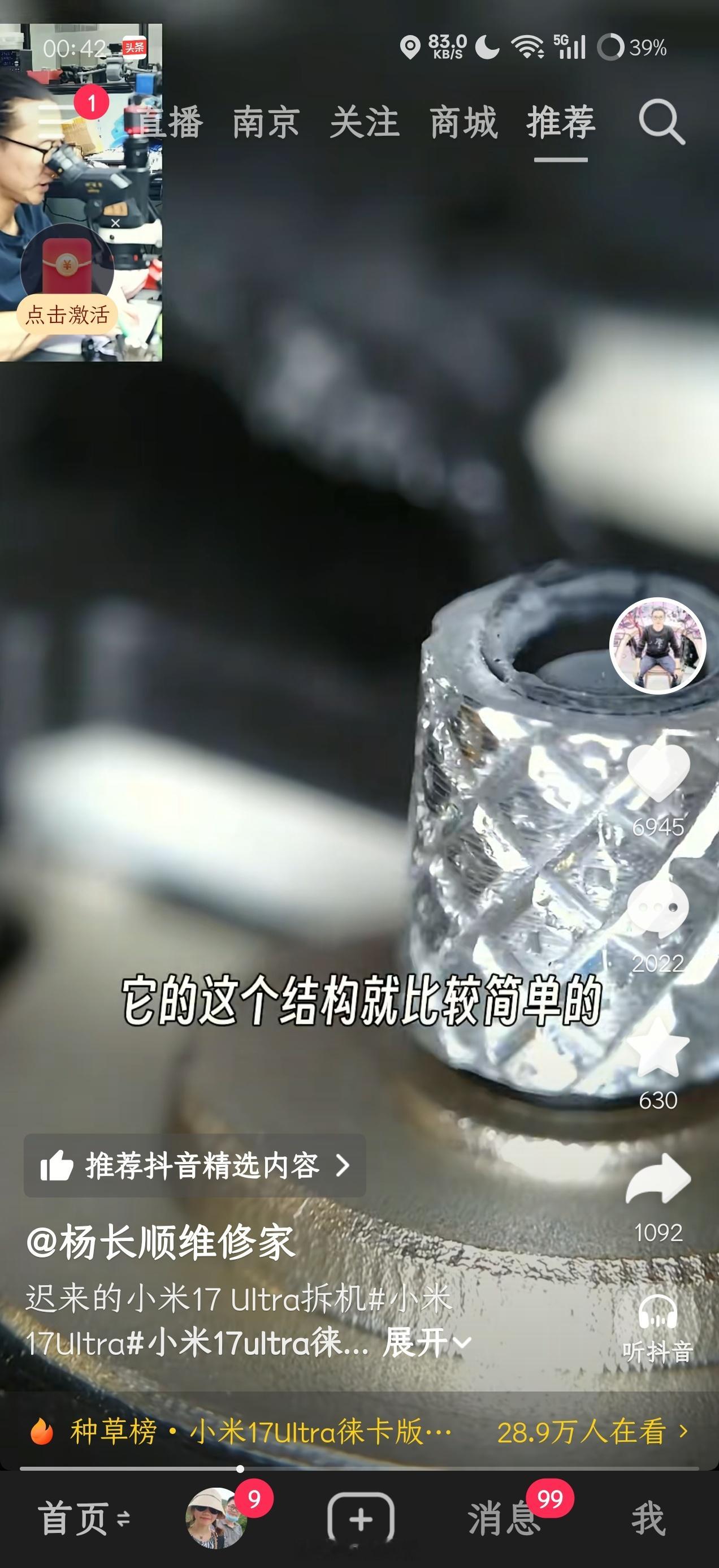 杨长顺账号正常啊,而且拆解小米17 Ultra徕卡版的视频状态也正常,怎么有人开始造谣他因为拆小米被封了?