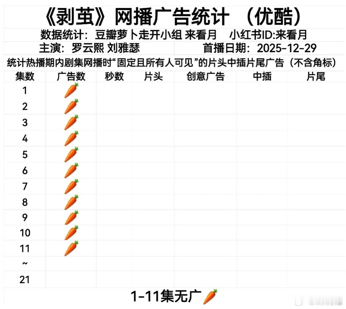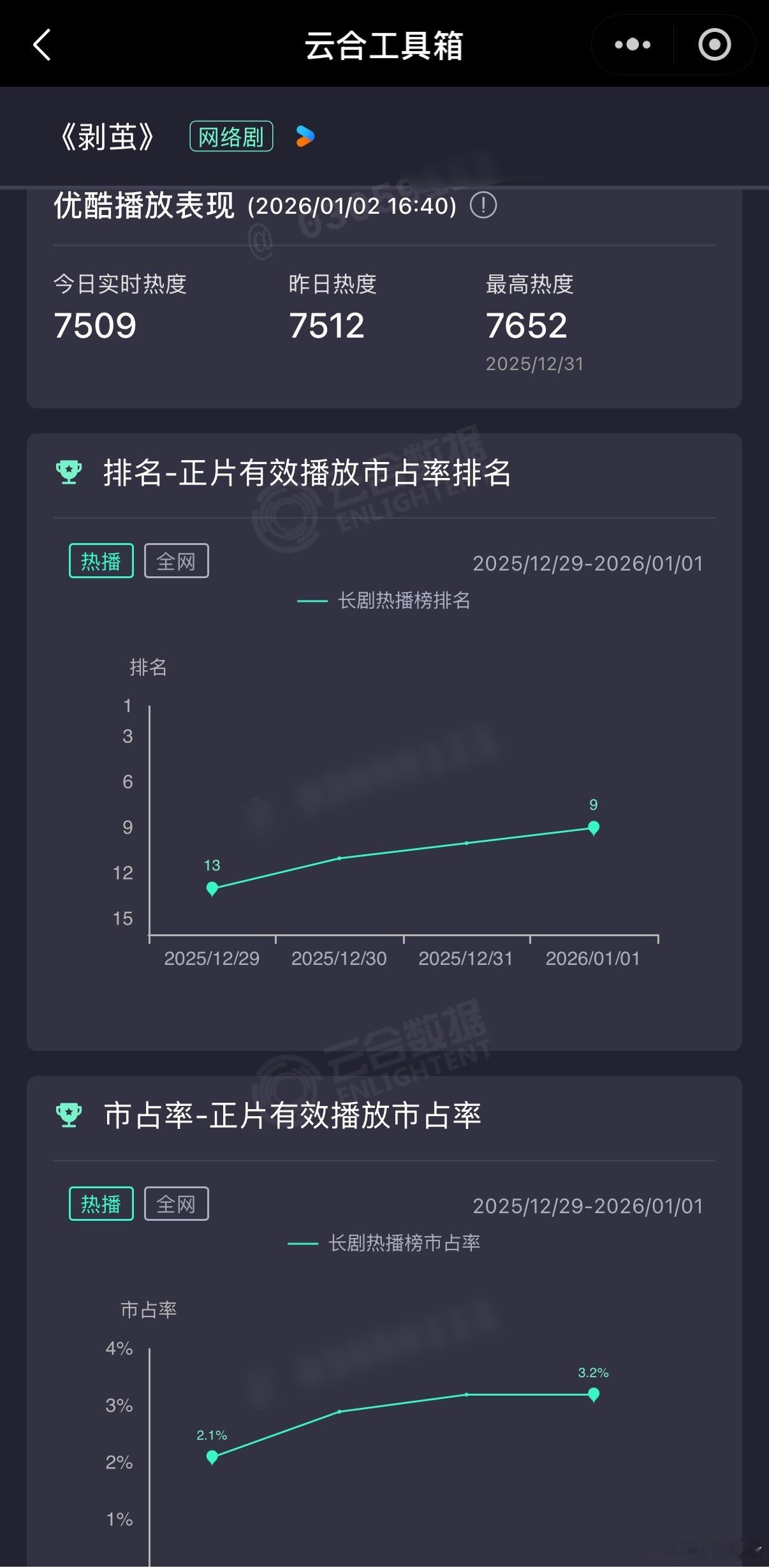 罗云熙新剧《剥茧》太可怕了,堪称史诗级扑街……开播4天云合最高仅3.2%,11集0广告🥕,目前集均261w……热播期集均估计1000w都达不到