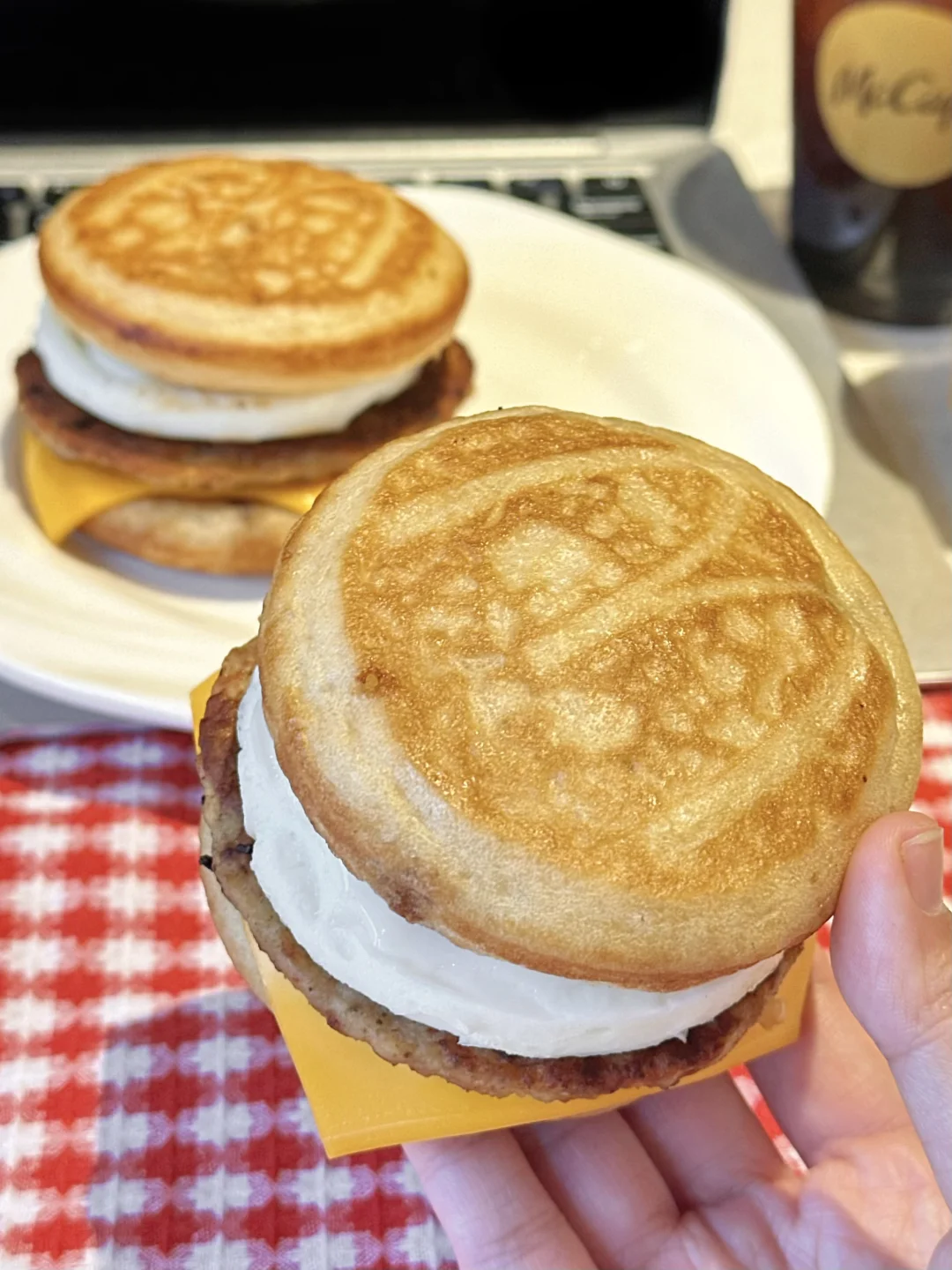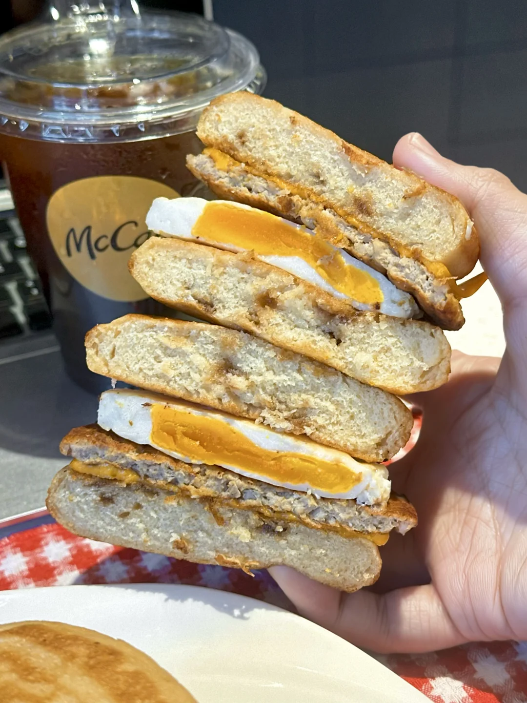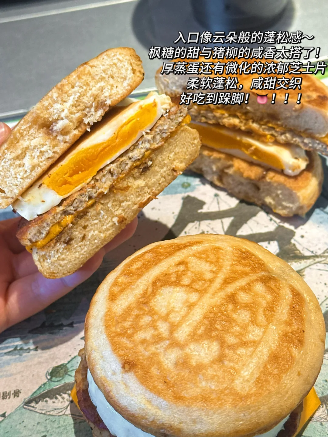 芜湖~不去香港也能吃上了 🍔新年第一顿是枫糖厚松饼堡! 新年吃咸甜,好运就连连~ - 软厚枫糖松饼和弹软的咸香猪柳 真的不要太满足😌 看着小小一个分量真不少, 超厚一个堡,给我吃撑了。 但不影响它的美味,我觉得我可以连吃一周🤩 - 麦说了,1.1-1.4连续4天枫糖班戟全天售卖!今天是唯一一天麦乐送免配送费哦! - 麦当劳枫糖厚松饼堡McGriddlesmcgriddles麦当劳全球爆款麦当劳枫糖厚松饼堡麦当劳早餐新年第一个祝福是麦麦给的