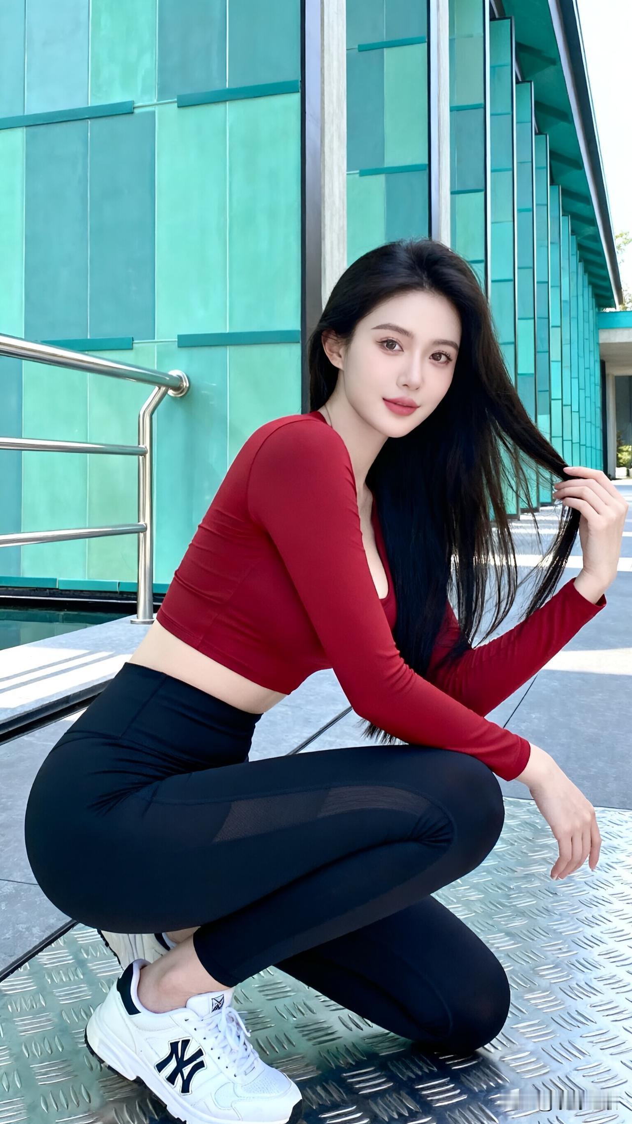 红黑运动风穿搭,这身段太绝了 酒红短款针织衫配黑色高腰运动裤,直接把运动风的辣妹感拉满!修身的酒红上衣勾勒出精致肩颈和腰腹线条,露脐设计小秀蛮腰,黑色高腰运动裤完美贴合腿部曲线,勾勒出超绝的腰臀比,红黑撞色经典又吸睛。 乌黑大波浪长发搭配清冷妆容,在青绿色的现代建筑背景下,甜酷气质扑面而来,蹲姿更凸显出曼妙的身段比例,白色运动鞋的搭配让整体造型休闲又时尚,日常出街或运动穿搭都超合适。没有多余的装饰,却凭简约的穿搭和绝佳身段,把运动辣妹的魅力展现得淋漓尽致。 这样的运动风辣妹穿搭谁看了不心动?评论区说说,你最喜欢这套搭配的哪个细节~ 运动风辣妹穿搭 红黑配色yyds 修身针织衫穿搭 高腰运动裤搭配