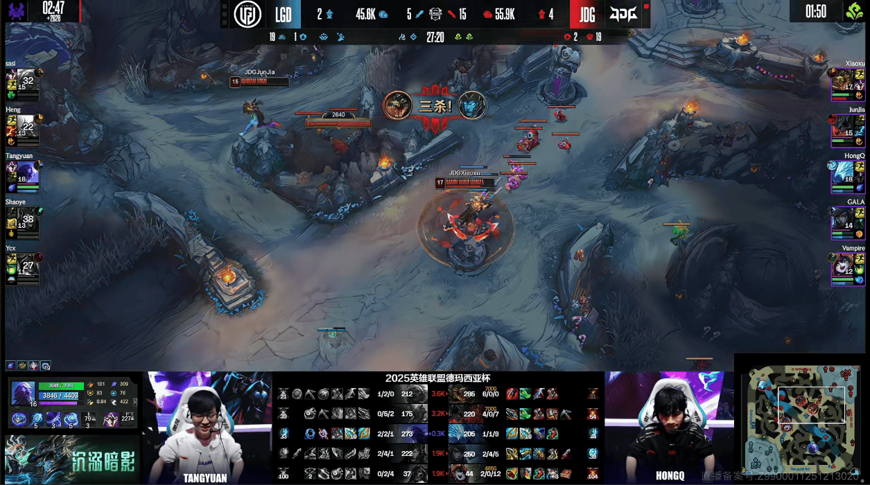 虎扑01月02日讯GAME2:LGD蓝色方;JDG红色方