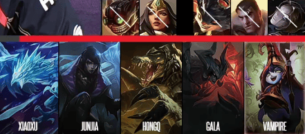 JDG选用:Xiaoxu鳄鱼;Junjia剑魔;HongQ冰鸟;GALA厄斐琉斯;Vampire露露