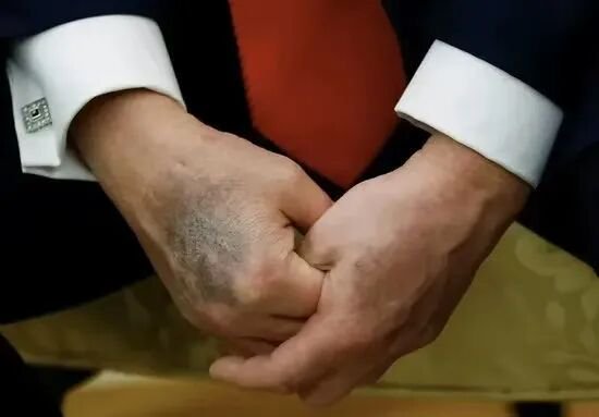 特朗普解释说,手背出现瘀青是因为每天服用阿司匹林,且服用剂量远高于医生建议的标准,但他“拒绝减少剂量”,称已经坚持服用25年,自己“有点迷信阿司匹林的效果”。
