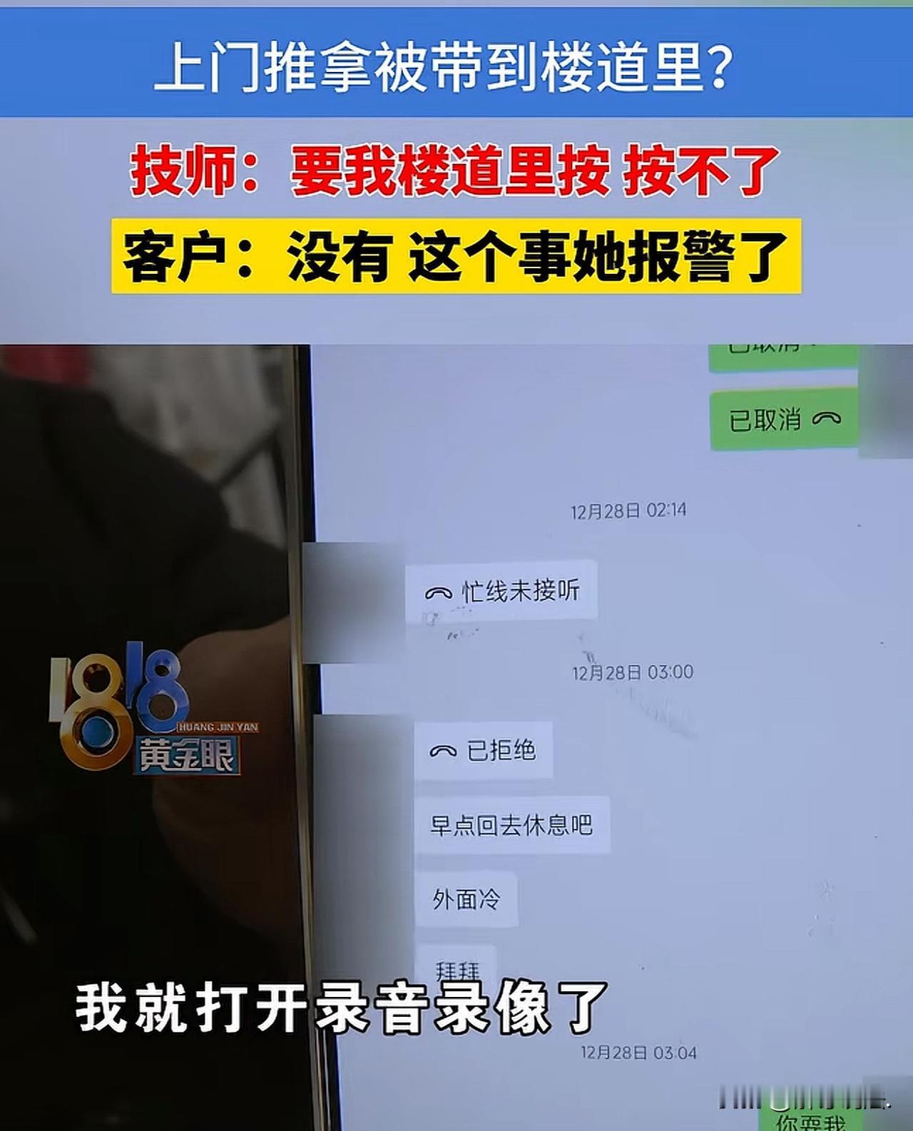 “到底谁说的是真相?“杭州淳安,女子做上门推拿的,一男子通过“附近的人”约她上门服务。谁知,女子抵达后,男子将他带到某小区18层,以妻子在家不方便为由,提出让女子在楼道服务,女子果断拒绝,并要求男子支付来回路费35元。男子不给,还骂骂咧咧,让女子滚,接着双方发生肢体冲突,还并惊动了警方。随后,经民警调解,男子支付了女子40元的医药费。本以为此事了解,可女子回到家后,才发现腰闪了,她再次联系男子,索要四五百的医药费。男子直接拒绝了女子。女子一气之下找来媒体曝光此事,男子说女子胡说八道,给出了完全不同的说法。 2025年12月28日,一陌生男子通过微信“附近的人”加上了许女士。 因徐女士是做上门推拿的,对方约徐女士上门服务,并给徐女士发了定位。 徐女士提出让对方先支付路费,可对方却说,等她人到了,连同服务费一起给她现金。 徐女士便没再计较,拿上工具箱,匆忙赶了过去,到对方家里时已经是00:42分。 然而,徐女士没想到,抵达后,客户直接把她领到了一栋楼的18层。 说他老婆在家,不方便让徐女士进门服务,又把她带到了旁边的侧门楼道里,说就在楼道里做推拿。 徐女士出门的时候穿得就少,楼道里又冷又不方便,根本不是能做推拿的地方。 如果客户提前在电话里说清楚,是要在楼道里按摩,她肯定直接就拒绝了,根本不会大半夜跑这一趟。 没料到,到地方了,客户整这一出。 徐女士很气愤,当场就拒绝了在楼道里服务的要求,并让客户出自己来回的路费,35元钱。 客户一听让他出来回路费,开始骂骂咧咧,还让徐女士赶紧滚! 徐女士懵了,缓过神后,赶紧拿出手机,并告知对方,自己要录音录像留证据。 客户怕了,拔腿就往楼下跑,徐女士虽然脚不太方便,但还是赶紧追了上去。 客户从十八层的楼梯口往下冲,等徐女士从十八层追出来的时候,对方已经跑到十七层,转眼又到了十六层。 追着追着,客户突然转过身来,挥着拳头就要打徐女士。 徐女士下意识地往后躲,这一躲不要紧,腰猛地就闪了一下,当时就疼得不行。 事发后徐女士第一时间报了警,民警赶到现场进行调解。 调解的时候,徐女士删掉了当时录的视频,客户也当场支付了40块钱的路费。 那个时候徐女士光顾着处理纠纷,还没顾上去医院检查,也就没跟对方提医药费的事儿。 本以为事情就这么过去了,可回家之后,徐女士的腰越来越疼,她赶紧去了医院检查。 检查结果显示,她的腰2~3椎体是陈旧性骨折愈合后改变,还有腰椎轻度骨质增生的情况。 为了治腰,徐女士前前后后花了四五百块钱,徐女士认为这笔费用应由客户出,于是,再次联系客户,索要医药费。 客户认为这事已经解决了,徐女士不能揪着自己不放,因此,拒绝了徐女士。 徐女士不肯善罢甘休,直接找来媒体曝光此事。 记者联系上了该客户,对方一口咬定当天根本没有提出过要在楼道里按摩的要求,更没有抢对方手机之类的行为,都是徐女士编造的谎言。 还说当天徐女士找上门来,自己看对方什么工具都没带,就觉得徐女士可能不是正经做推拿的,说不定是从事别的不正当行业,当场就说算了,不需要服务了。 没想到徐女士向自己路费,自己看徐女士来的时候打车花了19块钱,就想着给她来回的路费,算下来给40块钱就够了。 可徐女士说她回去要去更远的地方,张口就要500块钱,双方没谈拢,这才闹惊动了民警。 徐女士没想到对方反咬一口,她赶紧向记者解释,自己做的是堂堂正正的上门推拿生意,当天也随身带了工具箱,不知道客户为什么要这么说。 随后,记者从属地派出所了解到,徐女士第一次报案之后,双方已经在民警的调解下达成了一致。 后来徐女士因为腰部治疗费用的问题再次报案,目前警方已经行政立案,相关案件正在进一步办理当中。 《民法典》第1179条规定:侵害他人造成人身损害的,应当赔偿医疗费、护理费、交通费、营养费、住院伙食补助费等为治疗和康复支出的合理费用,以及因误工减少的收入。 本案中,若男子挥拳行为与徐女士躲闪致腰伤存在因果关系,则徐女士的四五百元医疗费属于合理赔偿范围,男子应承担赔偿责任。 陈旧性骨折不排除本次冲突诱发或加重症状,诊断报告、治疗记录、缴费凭证可作为费用合理性与因果关系的证据。 虽然首次调解未涉及后续发现的人身损害,但徐女士有权就新发生的治疗费用另行主张权利,不因前次调解而当然免责。