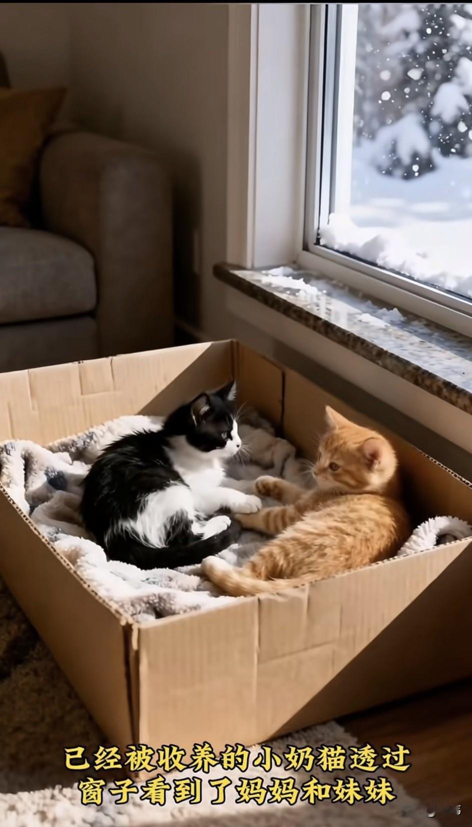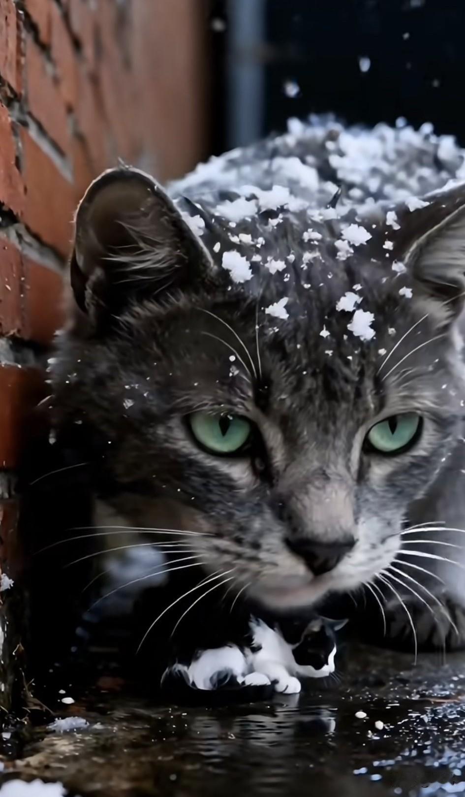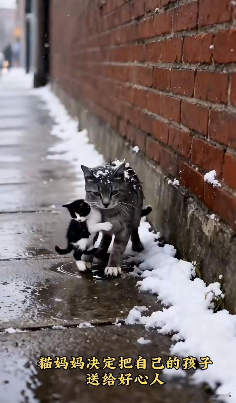 泪目了!一只流浪猫妈妈一直或者风餐露宿的生活,之前它还生了三只小奶猫,使原本就艰难的生活更加雪上加霜,而最近冬天来临了,连续的大雪,使它得了重病,它感觉自己的身体已经快不行了,于是决定把小猫带去送给好心人。 它叼起第一只黑白色的小猫放在了一位曾经投喂过它们的好心小姐姐家门口,看着小姐姐把小猫抱进去,它才离开,又叼来第二只小猫,小姐姐也把第二只小猫收养了。可当猫妈妈叼住第三只小猫过来时,终于倒下了,而那两只被收养的小猫,看到妈妈倒在雪地里,立刻叫上小姐姐去救助它们,可遗憾的是猫妈妈还是离开了这个世界,善良的小姐姐把它安葬在了院子里,然后收养了它的三个孩子,相信在她的照顾下,猫妈妈的孩子也会越来越好的。
