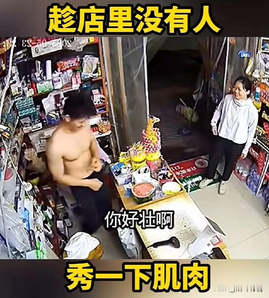 原来大龄优质女也喜欢健硕的男生, 男子一个人守着便利店, 想起自己多年健身的成果, 实在没忍住就脱了上衣, 对着背后的镜子, 开始展示自己的胸肌和二头肌, 只见他握起拳头之后, 胸前的肌肉块儿就显现而出 后又展示了自己的肱二头肌, 看着自己下半年的健身成果, 他非常的满意, 都不知身后已经进来了一位大龄优质女, 女人进来后看到这样的情景, 不仅没有打扰他, 还在背后默默的看着, 眼神都能够拉丝了, 差点哈喇子都流下来了, 感觉一下陷入了爱河, 突然男子觉得不对, 转身后吓了一跳, 连忙护住了自己的上半身, 进来的大龄优质女嘿嘿一笑, 小伙子,你好壮呀!有空聊聊呗! 这让小伙子害羞不已, 晚上看店的小伙子可一定要注意安全, 毕竟月黑风高夜, 一个人独自守店可不安全, 说不定大龄优质女会带着一帮姐妹照顾他的生意!大家对于女子看到男店主秀身材,不去提醒怎么看? 恋爱脑 健身腹肌男 胸肌型男 腹肌健身男 肌肉男锻炼日常