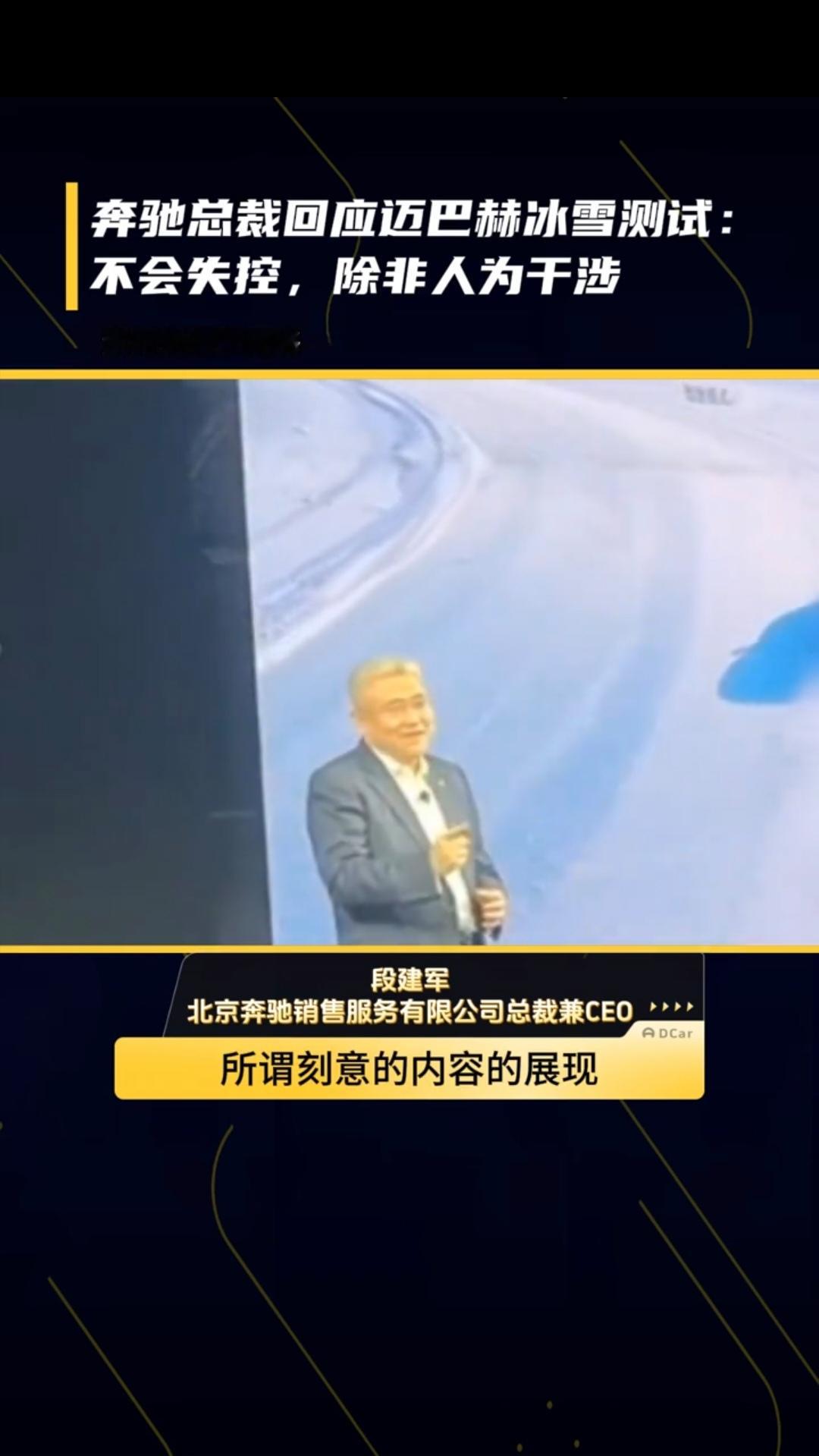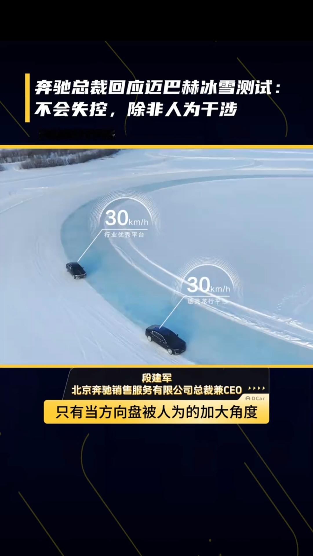 这事儿挺有意思,我一边看一边琢磨。简单说就是,在年初一个新品牌在发布会上放了个视频,他们的车在雪地上稳稳开到六十多公里每小时,而旁边的迈巴赫S680开到四十六公里每小时就打滑失控了。这视频当时就炸了锅。结果快一年了,奔驰中国总裁段建军才在最近的冰雪活动上亲自下场,说那视频里的操作“不正经”,是有人故意猛打方向盘还不回正,硬把车“开”失控的。他自己上去开,跑到五十五公里每小时都稳得很。