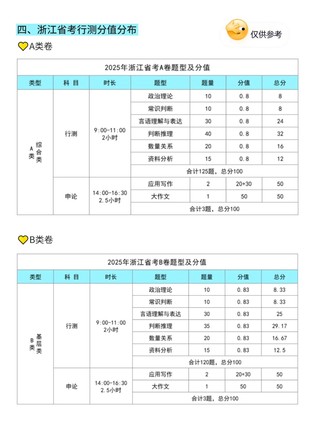 💛💛浙江省考行测题量(分A、B、C、D类卷)
