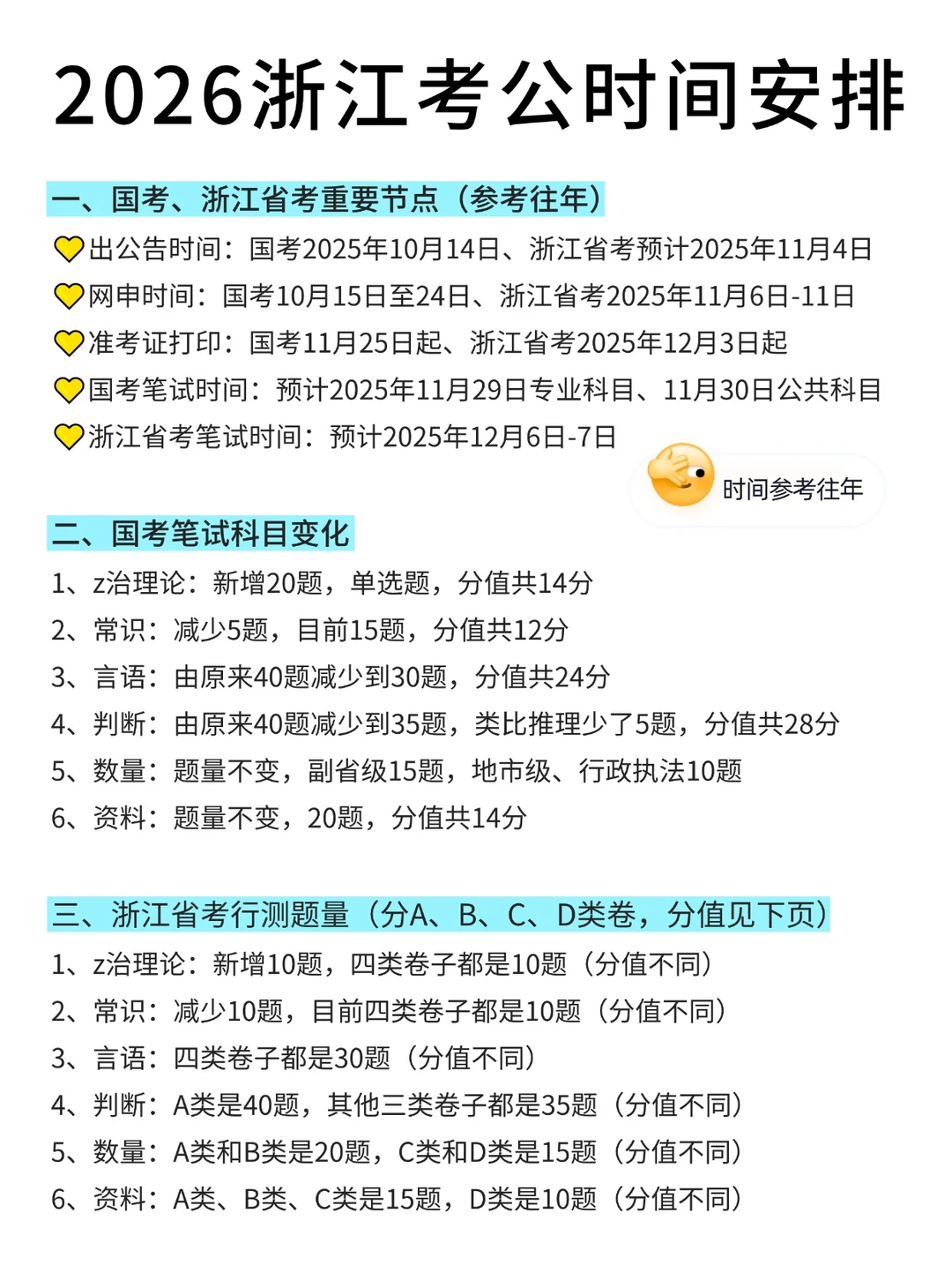 ◼ 出公告时间:国考2025年10月14日、浙江省考预计2025年11月4日