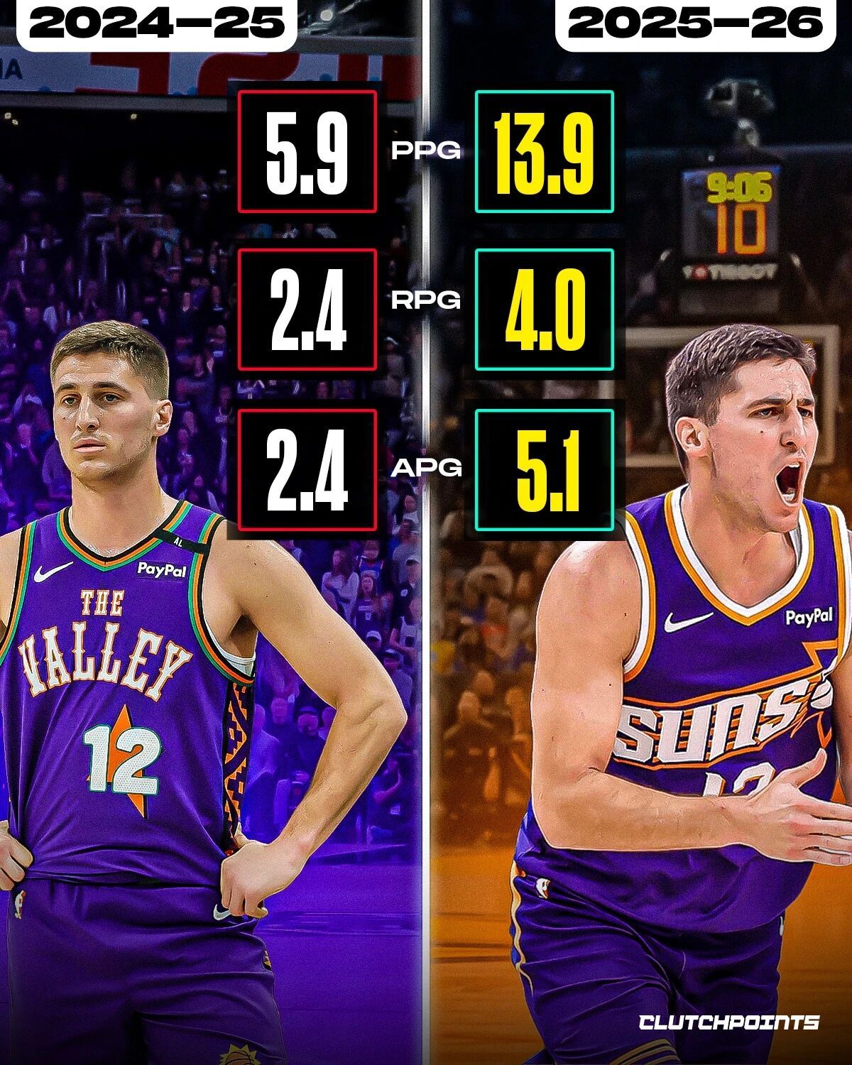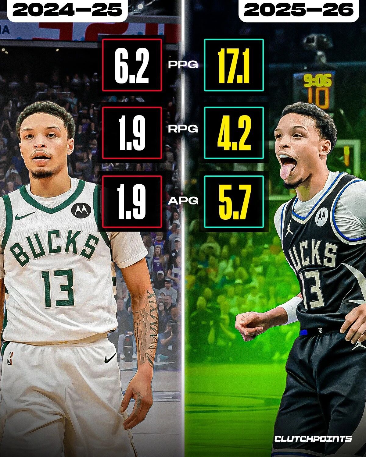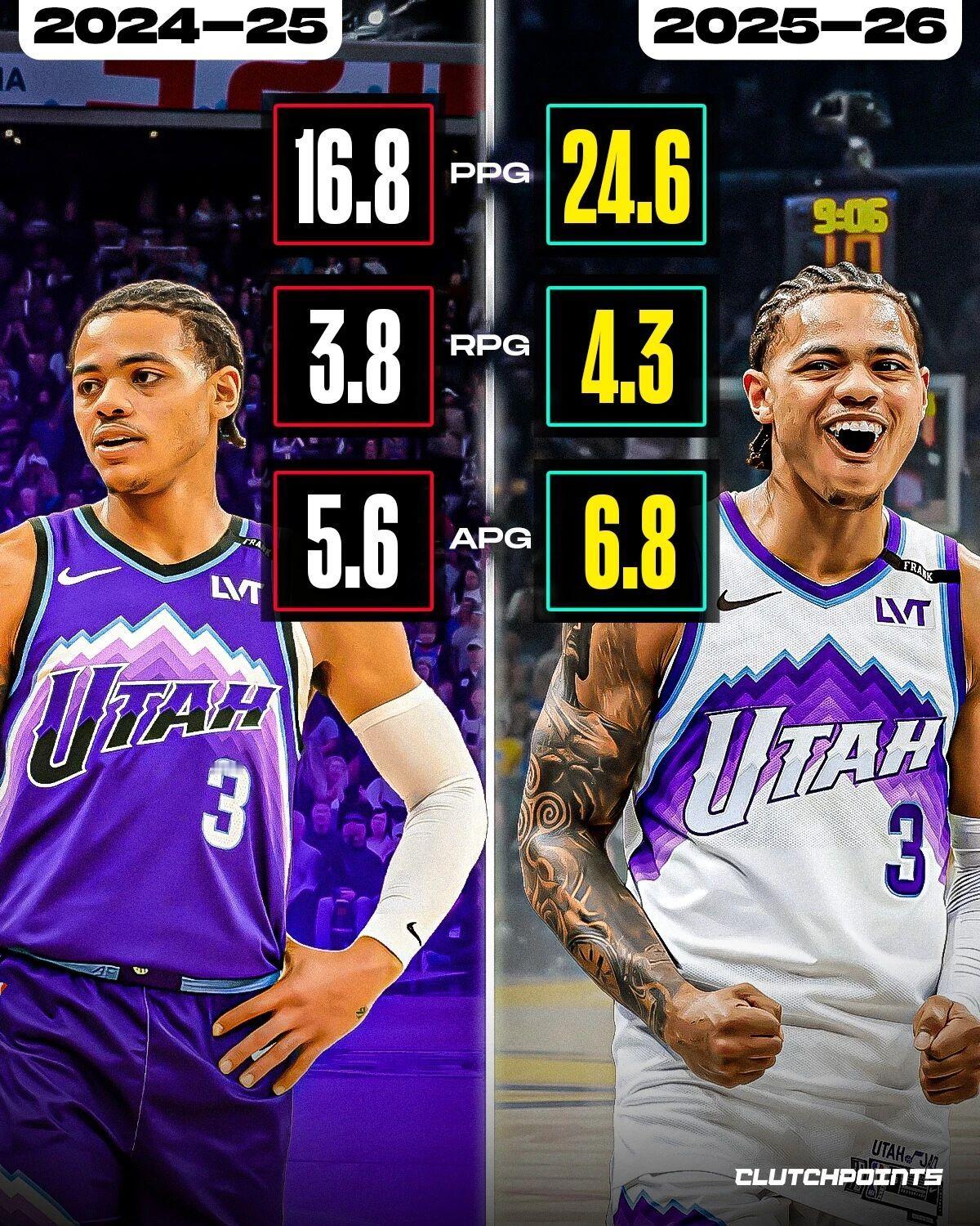 联盟本赛季进步最快的球员表现,谁的进步幅度最大?Images via Clutc