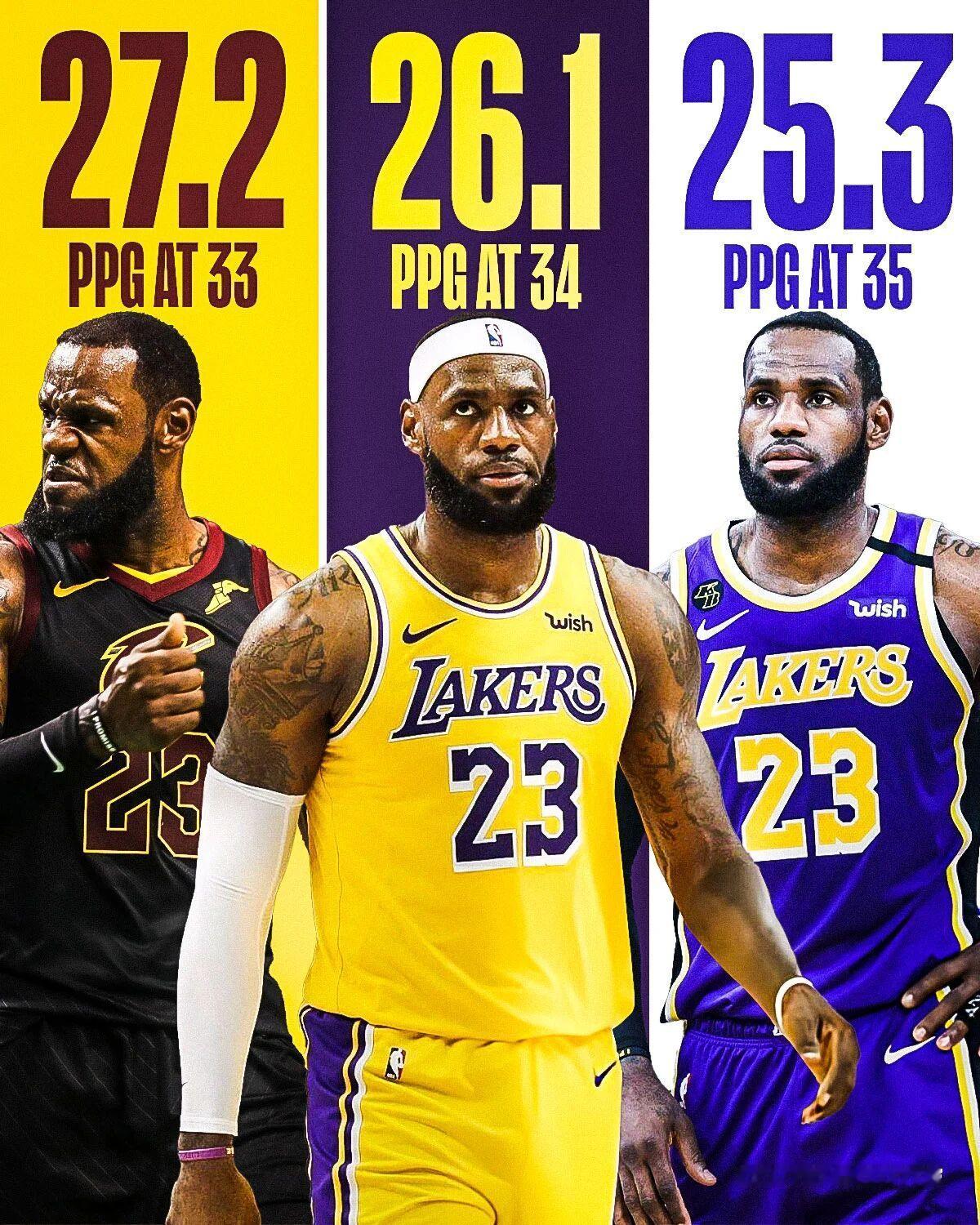 美媒盘点詹姆斯每个年龄段的场均得分,最长的河还在流淌…Images via Cl