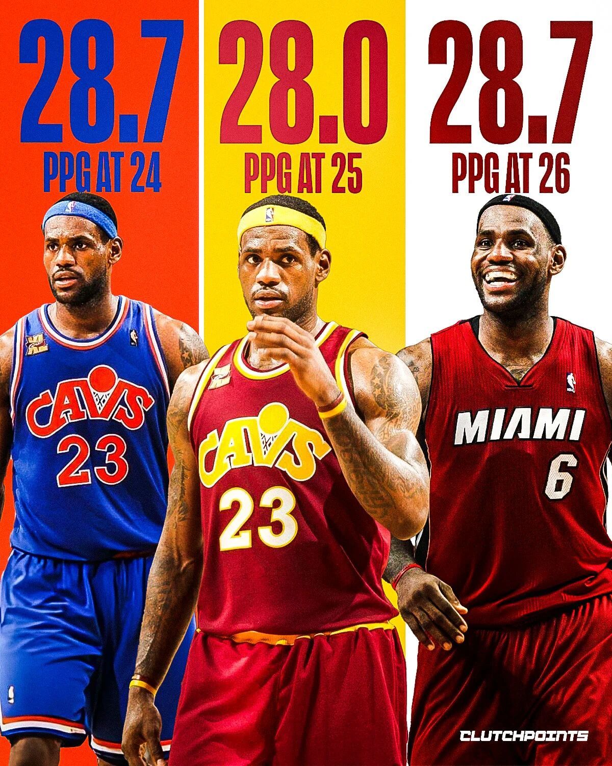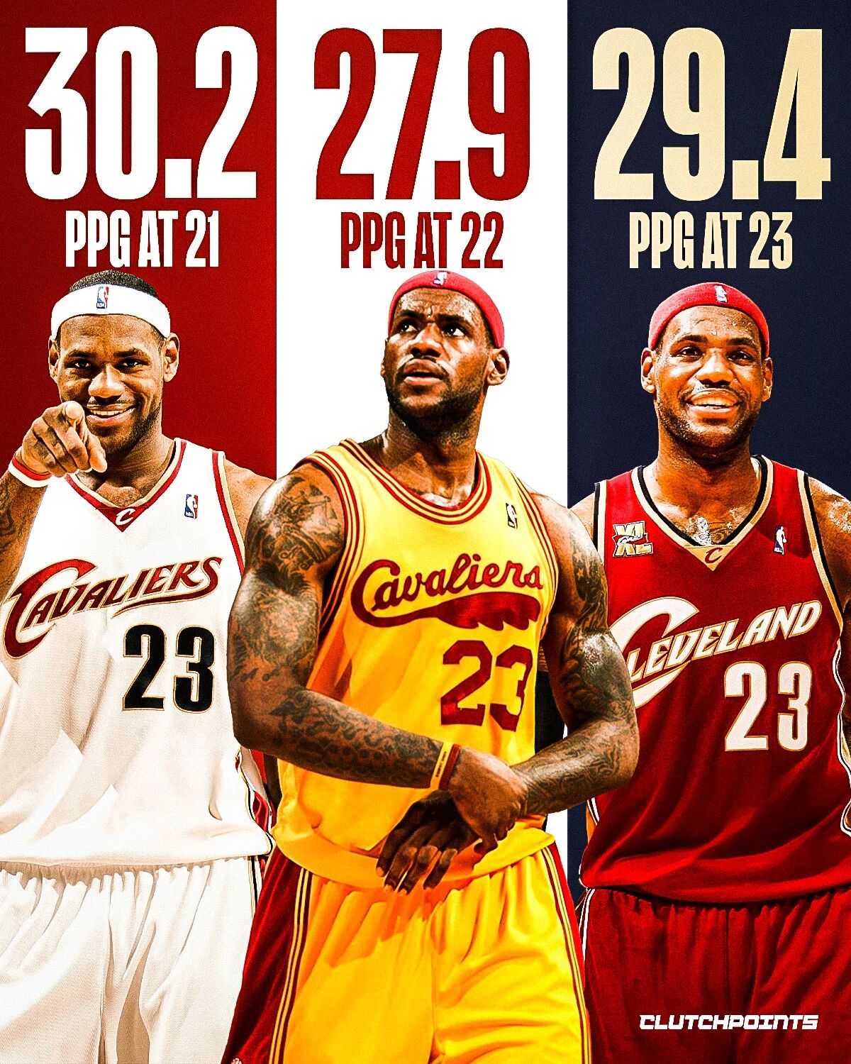 美媒盘点詹姆斯每个年龄段的场均得分,最长的河还在流淌…Images via ClutchPoints