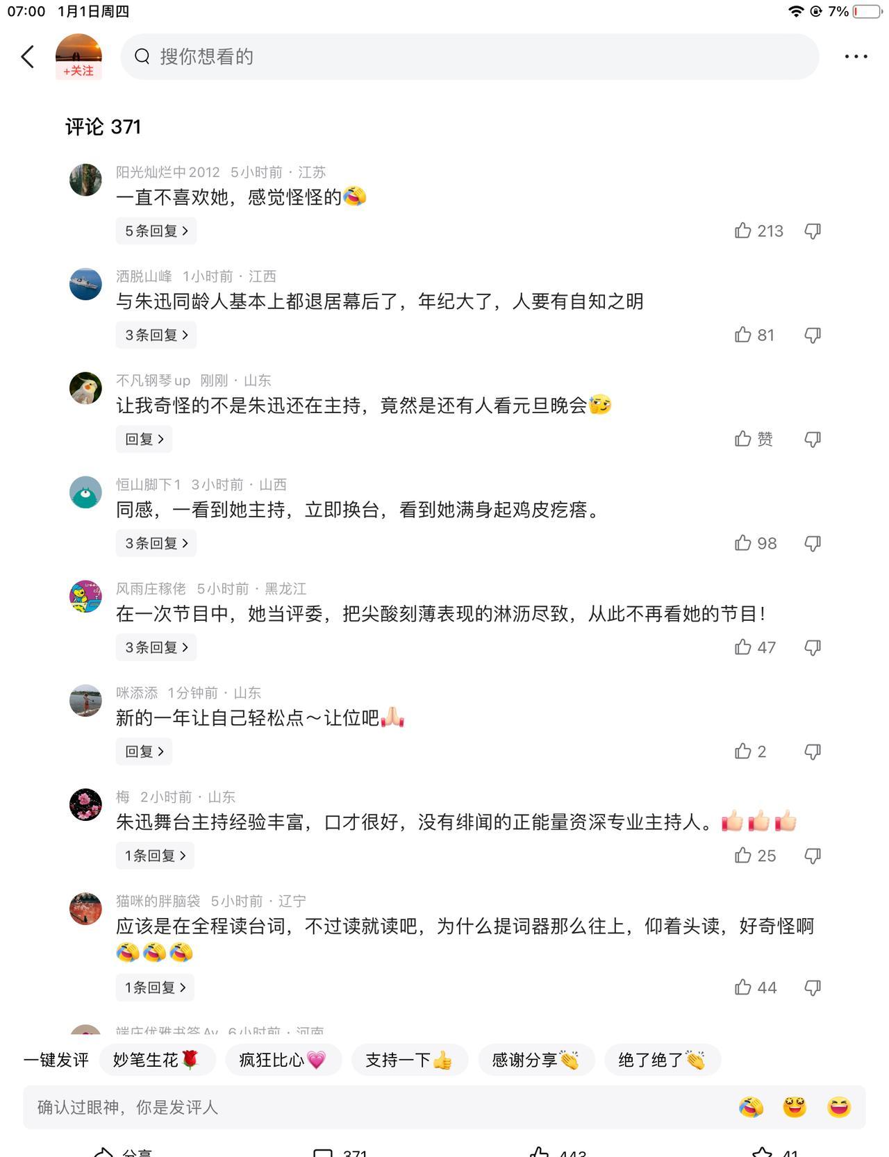 朱迅又站上中秋晚会的舞台,评论区却炸了。 2023年,她依然活跃在央视多档节目,大型晚会主持工作照旧。 镜头拉近,她的眼角有了细纹,眼神偶尔上瞟,被指视觉效果不佳。 观众席的温度,似乎都凝固在她略显僵硬的嘴角。 一边是倪萍、周涛、董卿等前辈退居幕后,开启人生下半场。 另一边,李思思、王小骞早已转身,在直播间找到新赛道。 当年龄成为数字,热爱与状态该如何自处? 央视需要传承,观众需要新鲜感,这道题,真的无解吗? 如果热爱可抵岁月漫长,那观众的审美疲劳,又该如何安放?