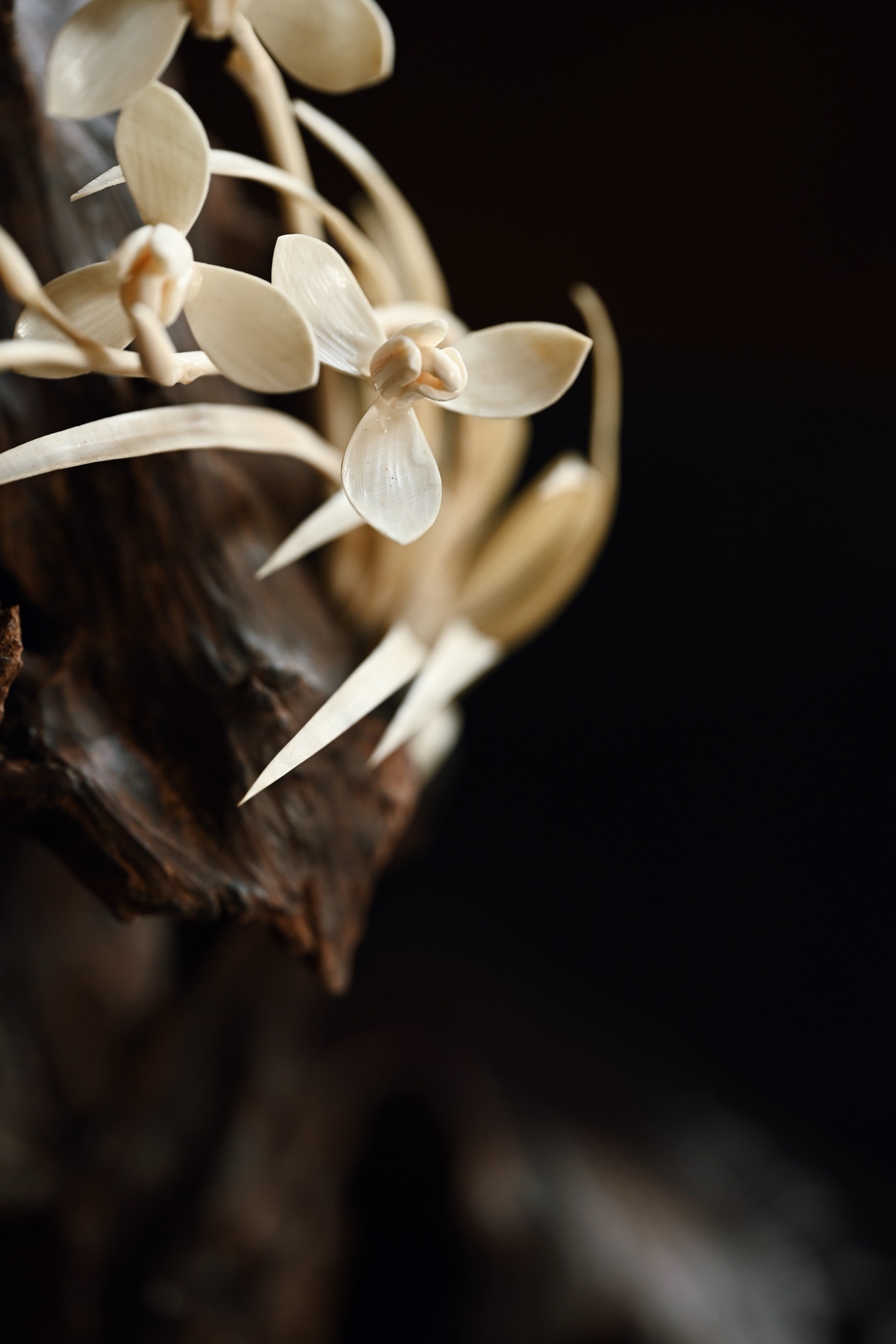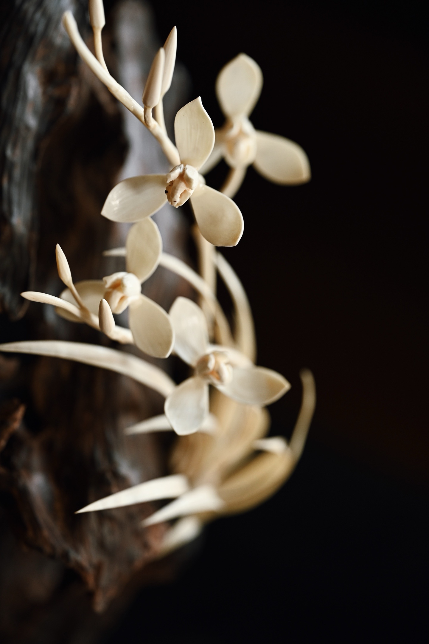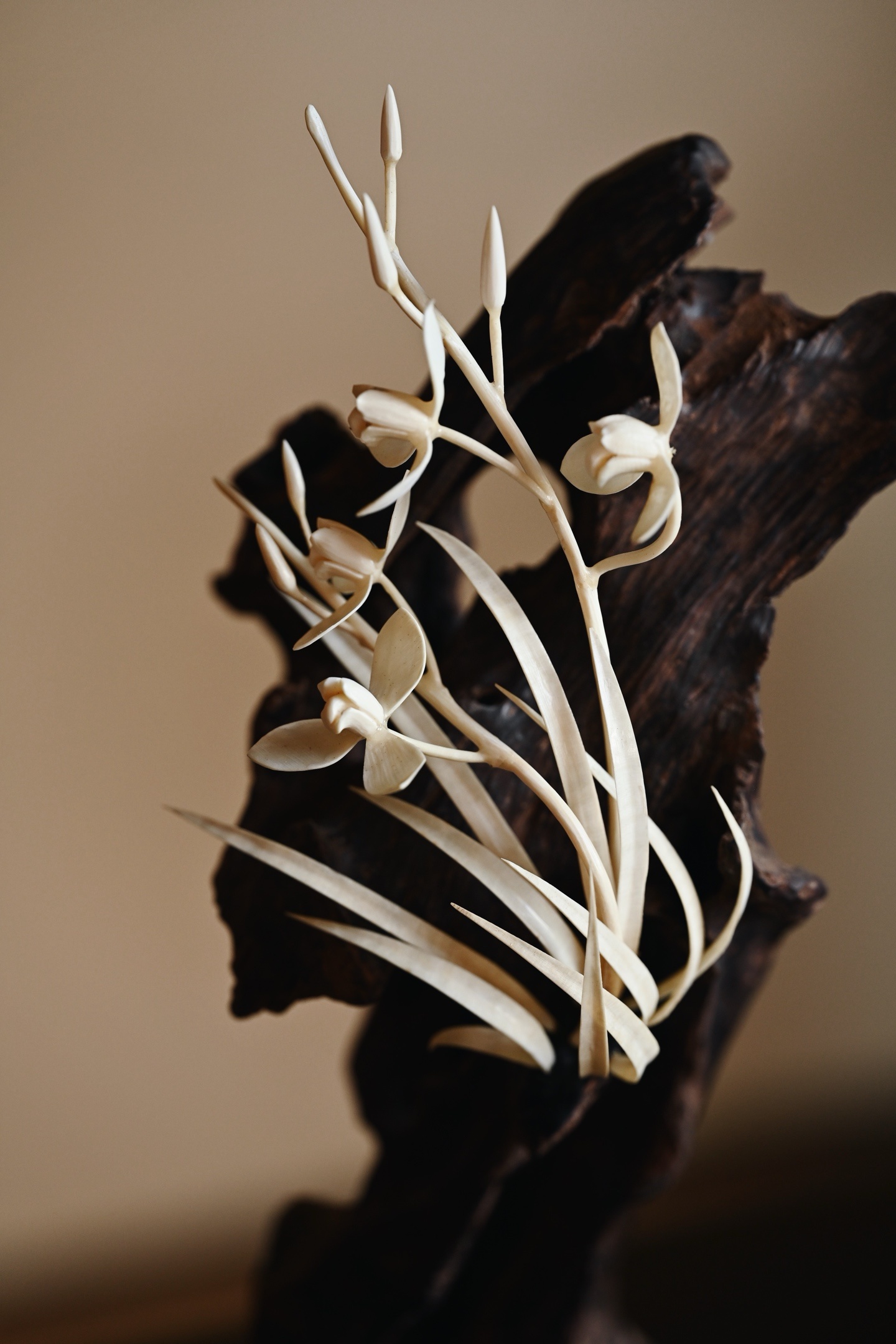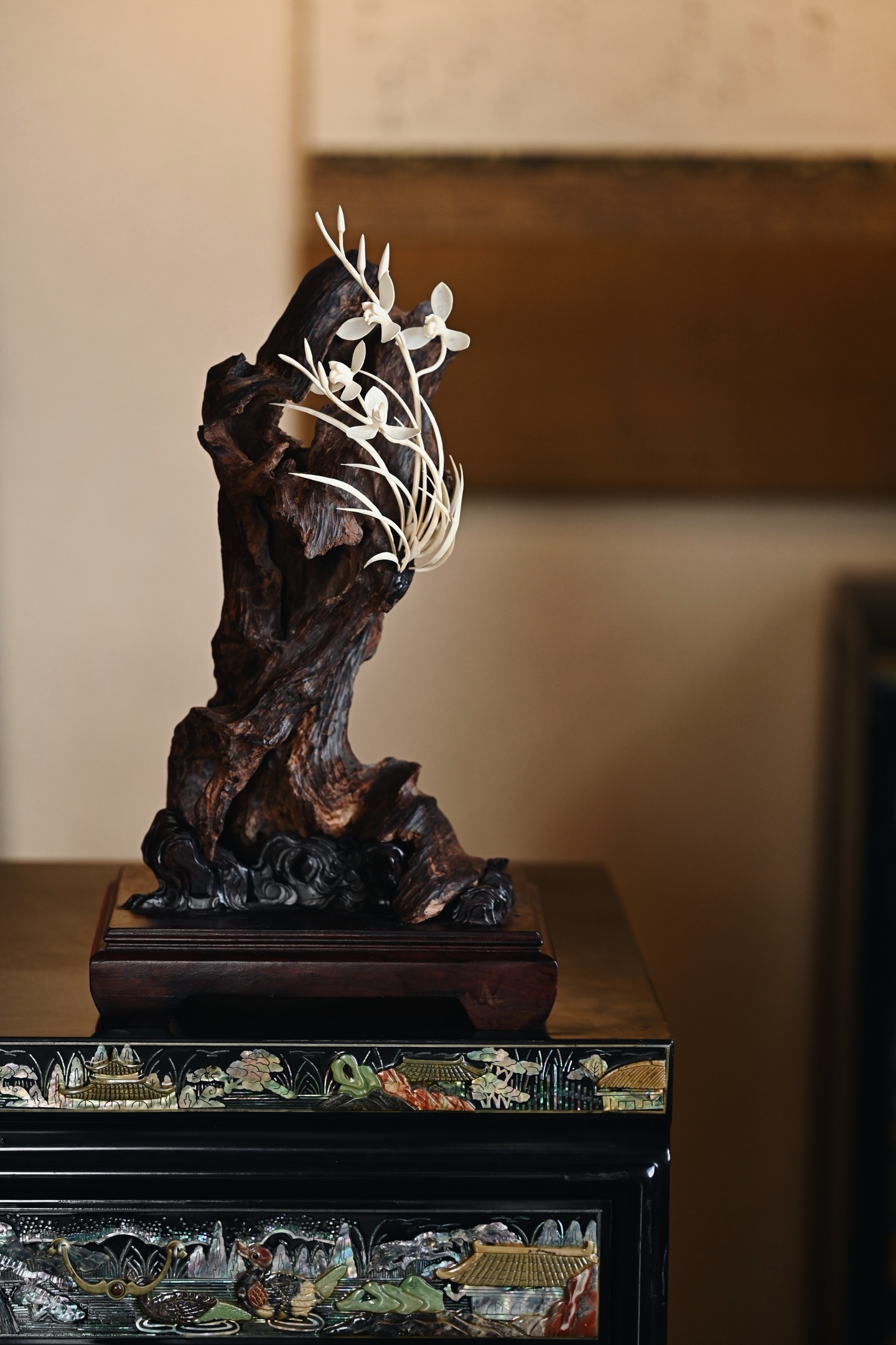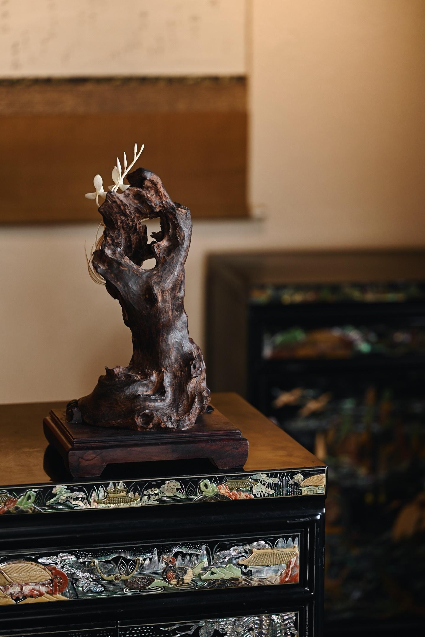 降真香×猛犸 | 画兰 摆件取料天然,雕嵌兰花似伴石而生,灵秀之姿跃然眼前,花叶