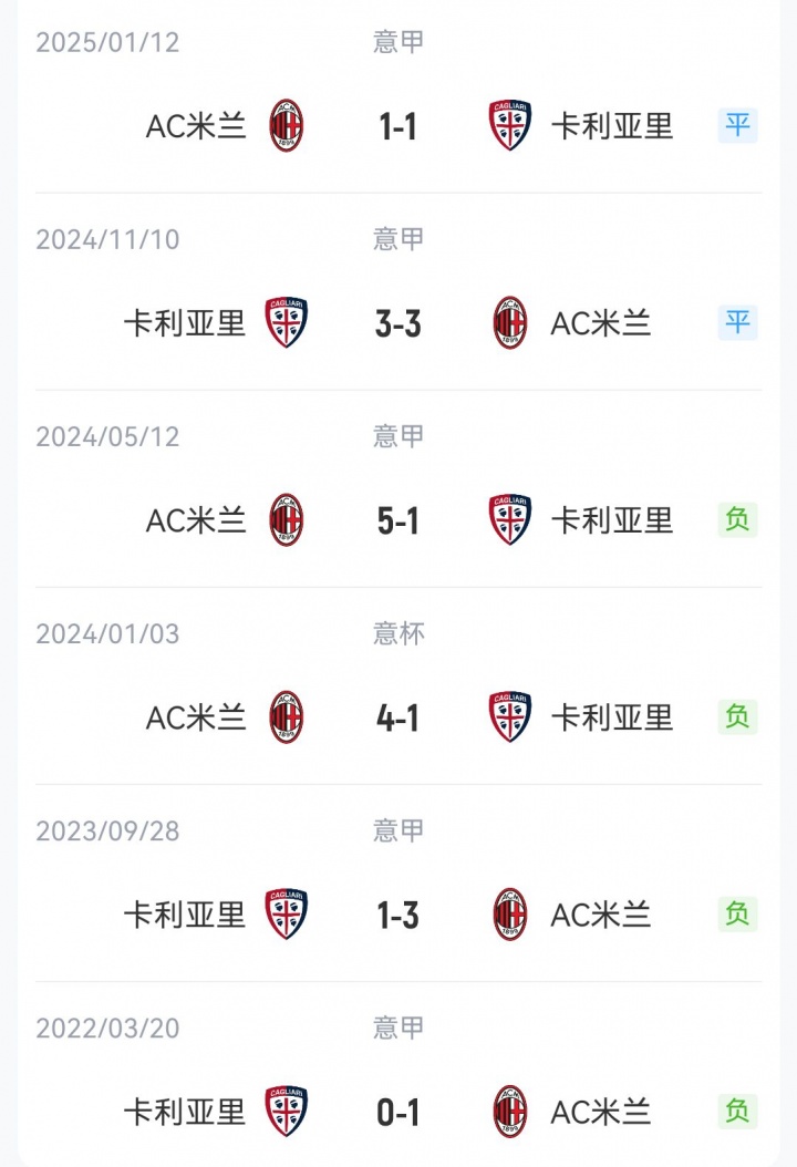 本场比赛前卡利亚里4胜6平7负,积18分排名意甲第14;米兰10胜5平1负,积35分排名意甲第2,距离榜首1分。