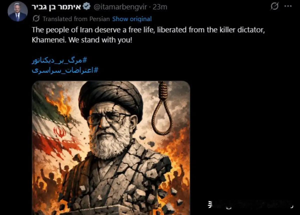 伊朗和哈梅内伊最危险的一次来了,以色列官员发布这张照片说“伊朗人民理应享有自由的生活,摆脱杀人独裁者哈梅内伊的统治。我们与你们站在一起!”特朗普也警告伊朗说美国要出手。他们似乎是要拯救伊朗人民,实则就是要铲除伊朗政权,这种火上浇油,对伊朗人民都是更大的灾难,就看伊朗和哈梅内伊能否躲过这一劫。