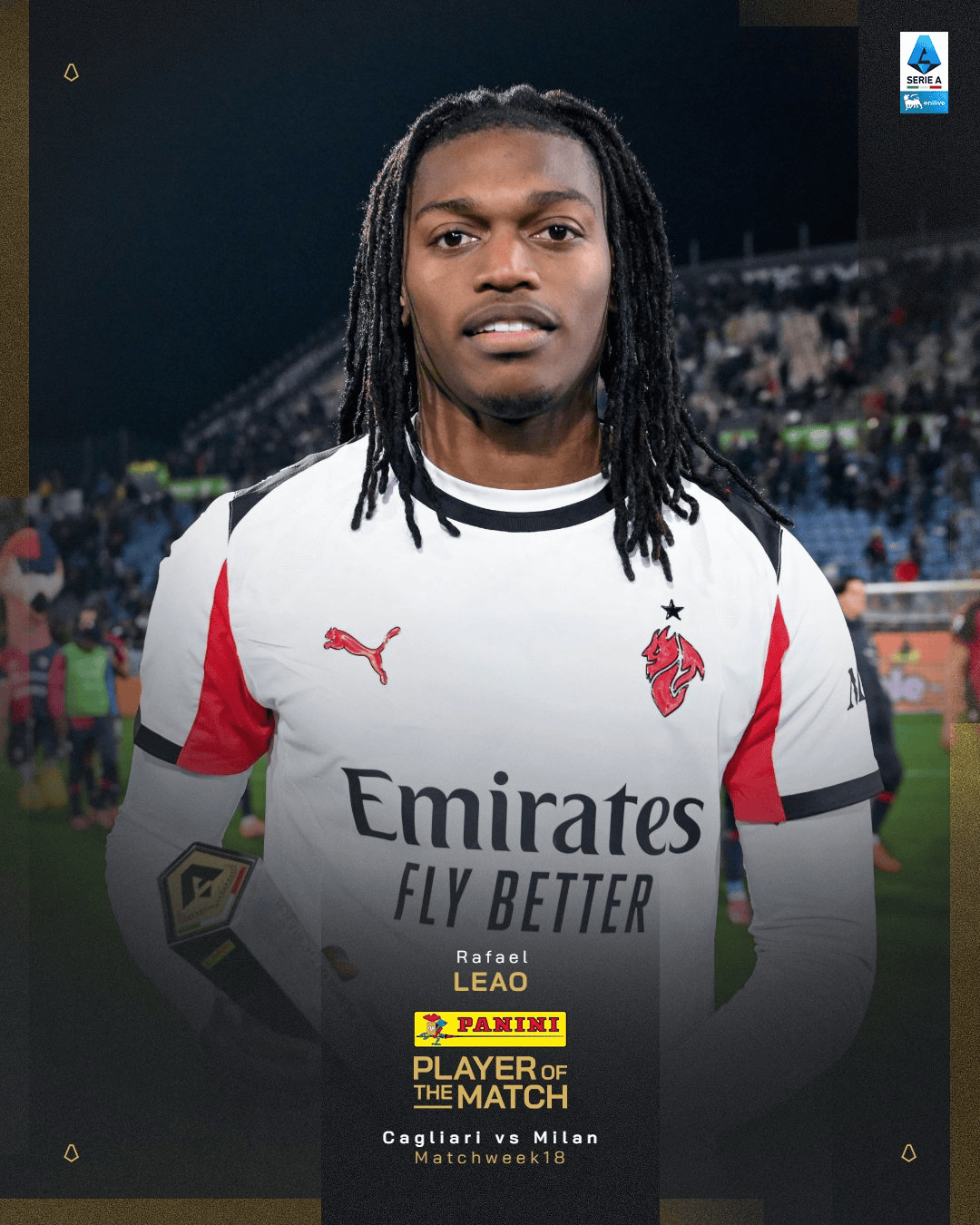 虎扑01月02日讯意甲联赛第十八轮,AC米兰客场1-0卡利亚里。莱奥首发登场并贡献一粒进球,为球队带回三分。赛后,他当选为意甲官方评选的全场最佳球员。