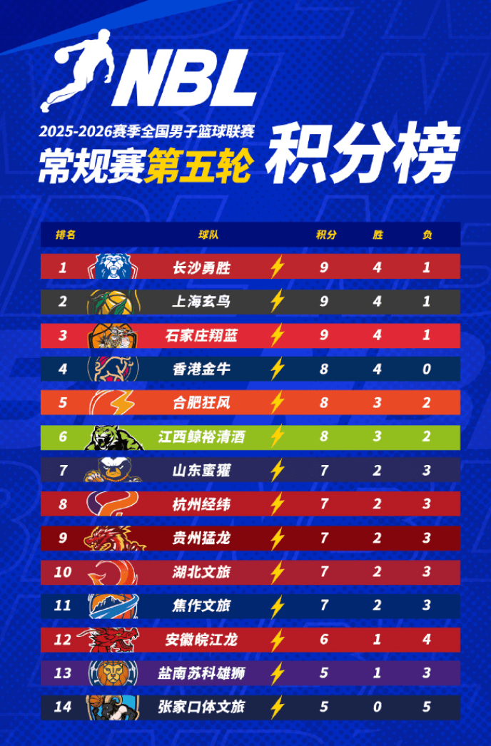 配文:[积分榜]2025-2026赛季NBL常规赛积分榜(截至第五轮结束)
