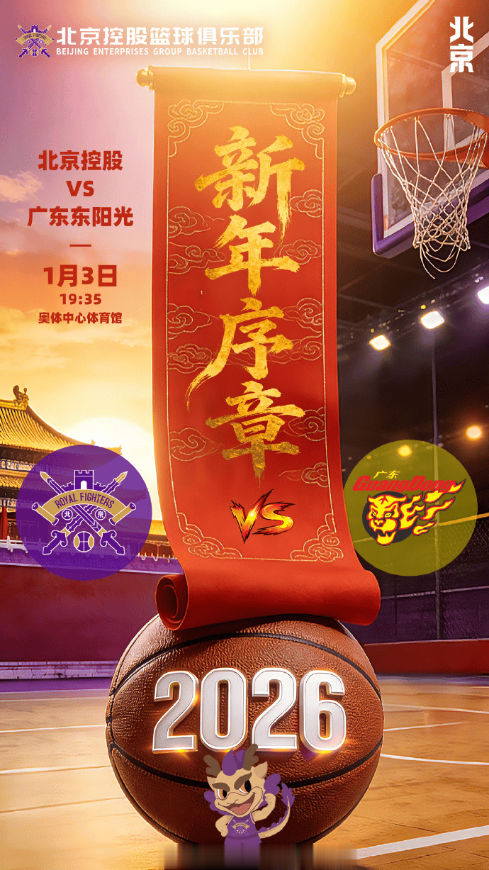 北控男篮分享今日比赛海报:球队将于今晚对阵广东男篮