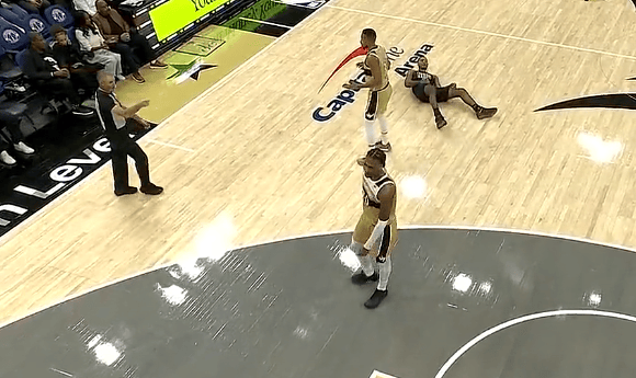 比赛的第四节,萨尔双手推倒挡拆的克劳尼,回看后被吹罚一级恶意犯规。