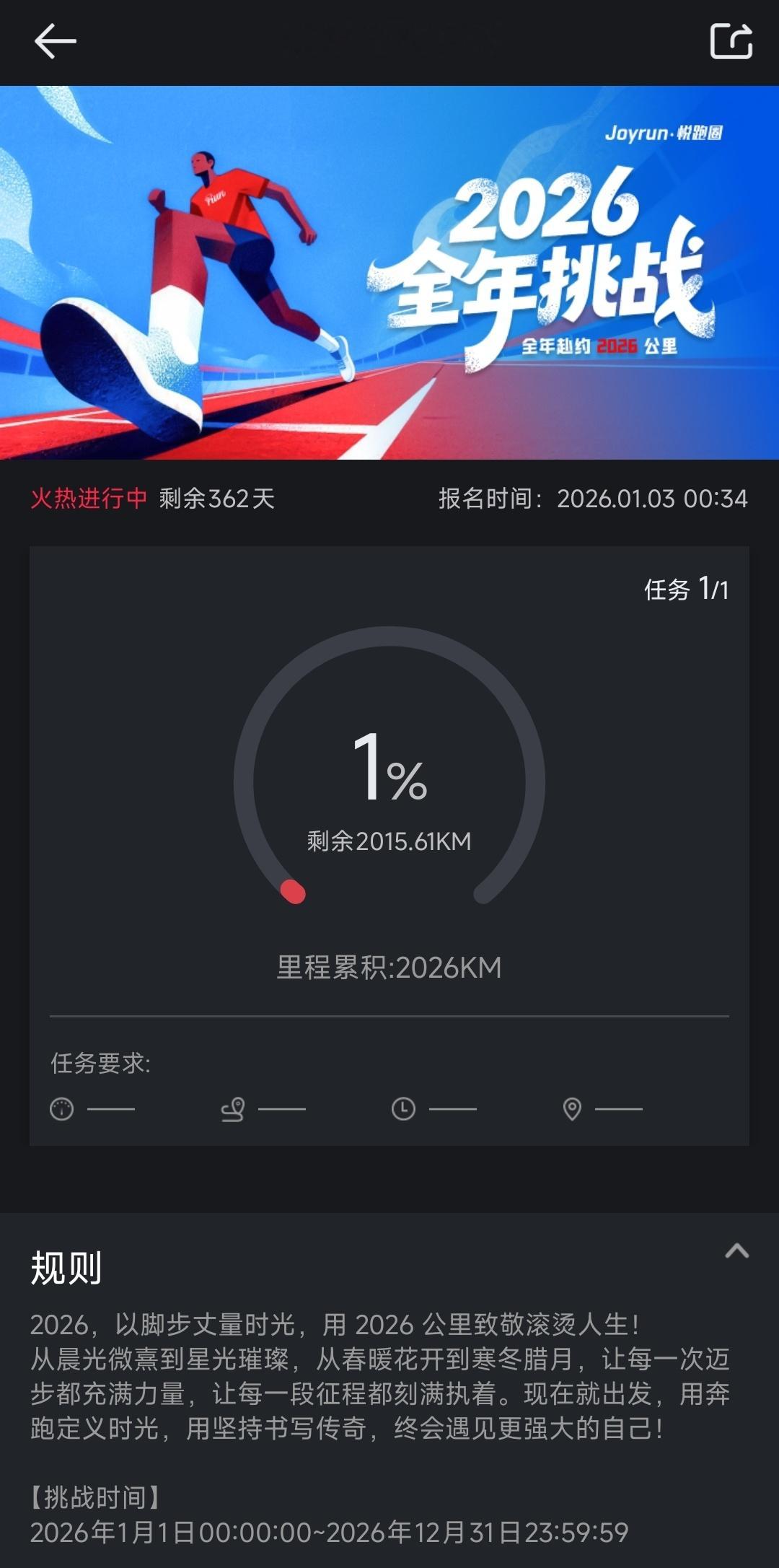 2026 flag:2026公里跑步,不追求配速,马拉松随缘,坚持力量健身,坚持饮食控制,没事不喝酒,有事少喝酒,不要超半斤,坚决不醉酒,照顾好身体,照顾好家人,努力去工作,好好打理钱,祝认识的人身体健康,万事如意,财源滚滚