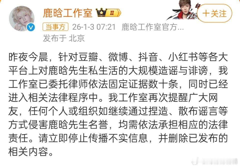代号不是保护伞,是武器。鹿晗工作室昨天又出手了,这次不是警告,是直接向平台方提