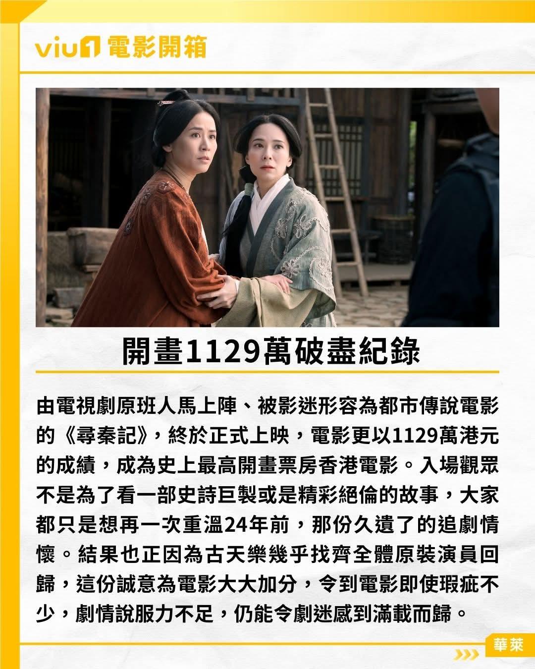 《寻秦记》卖情怀用对方法 观众当聚旧派对 古天乐林峯师徒情最有火花 惜难再进一步 由电视剧原班人马上阵、被影迷形容为都市传说电影的《寻秦记》,终于正式上映,电影更以1129万港元的成绩,成为史上最高开画票房香港电影。而《寻秦记》港上映首日即登年度票房第7位,入场观众不是为了看一部史诗巨製或是精彩绝伦的故事,大家都只是想再一次重温24年前,那份久遗了的追剧情怀。结果也正因为古天乐几乎找齐全体原装演员回归,这份诚意为电影大大加分,令到电影即使瑕疵不少,剧情说服力不足,仍能令剧迷感到满载而归。 同样卖情怀,却连正场戏院也上映不到,只能以网络电影方式上架的《我和殭尸有个约会》电影新版《驱魔龙族马小玲》,正好是一次破坏IP、不明白观众需要的反面教材。电影的问题并不只在于製作质素或政策限制,而是创作方向本身就与原作精神脱节。全员换角之下,角色只剩下名字,却失去灵魂;故事近乎重拍电视版,却又因各种限制连「殭尸」都不能直说,最终变成既不新、亦不旧的尴尬产物。 相反《寻秦记》却深明电影版所承载的,有那些是观众最期待的东西,项少龙那种与时代格格不入的喜感固然重要,每一个经典人物的登场,也是为了令观众精神为之一振。宣萱饰演的乌廷芳及陈国邦饰演的李斯,最多空间发挥,也最抢镜。滕丽名饰演的善柔,更有种令人眼前一亮的惊喜,可惜郭羡妮饰演的琴清以及在电视剧中与古天乐妙问妙答的陶总管欧瑞伟,也没有太多戏份。 故事焦点,始终回到古天乐饰演的项少龙,与林峯饰演的徒弟嬴政/赵盘,这两师徒的情谊之上,这亦是观众最关心的内容,而且到终战之后更对这份情谊下了很好的收尾,即使中尾段的动作场面,未有好好做出以古对今的比拼巧思,也足够令粉丝收货。一次为剧迷服务的作品,找大批熟悉面孔来与观众再相聚,根本就是一次聚旧派对,尤其不断插入电视剧重温画面,竟不期然让人有种莫名的感动。 电影寻秦记寻秦记我和殭尸有个约会