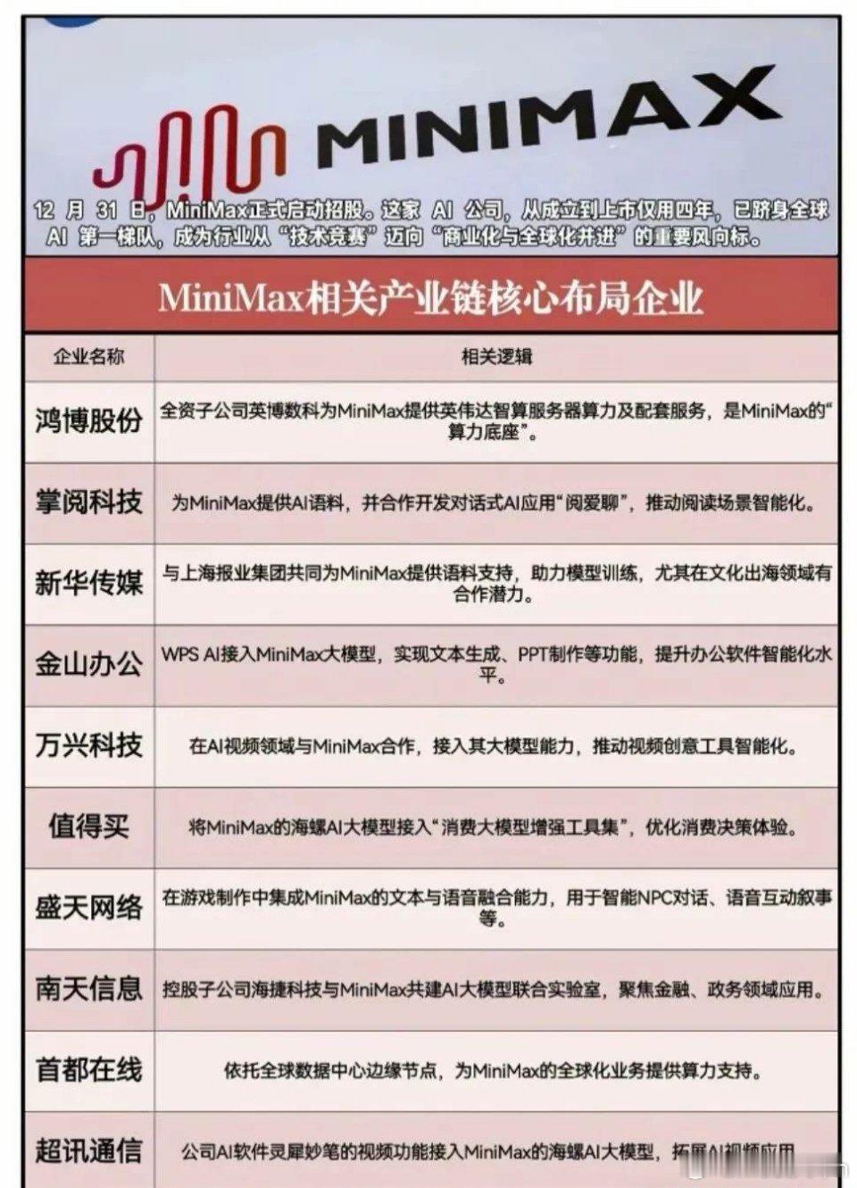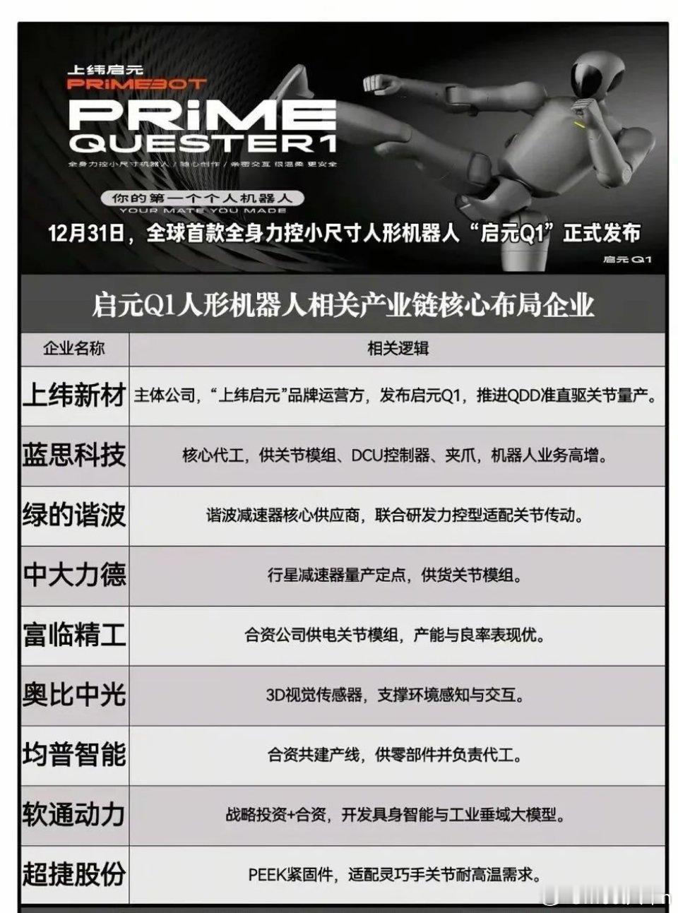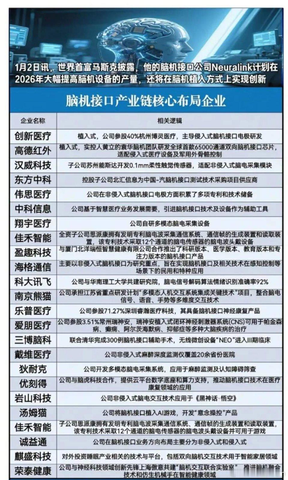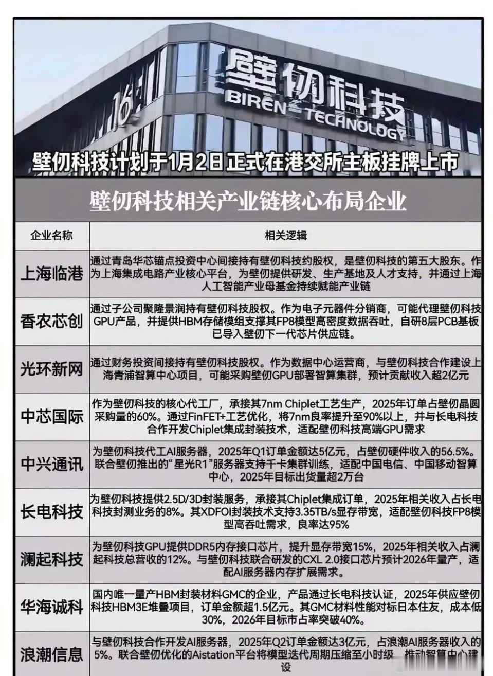 假期热门科技题材概念集合:昆仑芯、蓝箭航天、壁仞科技IPO概念等(附股)全是重磅利好,假期热门科技题材概念集合整理:昆仑芯IPO概念、壁仞科技IPO概念、燧原科技IPO概念、蓝箭航天IPO概念、稀宇科技IPO概念、长鑫存储IPO概念、启元人形机器人概念等等。特别声明:只做行业科普不作推荐,不对任何人构成投资建议,资料取材网络仅供参考,不能作为投资依据。理财有风险入市需谨慎!(1)百度昆仑芯IPO概念龙头梳理开年重磅!1月2日百度官宣,昆仑芯已于1月1日向港交所提交A1表格申请分拆上市,计划通过公开发售+机构配售完成分拆,百度持续加码AI芯片领域布局。昆仑芯概念龙头代表:浪潮信息、初灵信息、四川双马、神州信息等等。(2)启元Q1人形机器人概念龙头梳理全球首款全身力控小尺寸人形机器人“启元Q1”于12月31日正式发布,上纬新材作为主体公司操盘,蓝思科技、绿的谐波等多家企业围绕核心零部件、代工、智能技术等环节形成产业链布局。(3)壁仞科技IPO相关概念龙头梳理2026年1月2日,壁仞科技在港交所挂牌,成港股GPU第一股与2026年港股首只新股,上市首日大涨超75%!中芯国际、中兴通讯等产业链企业从生产代工、订单合作等维度为其提供核心支撑,半导体板块同步走高。(4)燧原科技IPO相关概念梳理国产AI芯片赛道再传新动态!2026年1月1日燧原科技完成IPO辅导,中芯国际承接其60%的晶圆采购量,浪潮信息代工AI服务器,景嘉微则与其联合开发下一代GPU,产业链企业多维度助力其发展。燧原科技是国产GPU四小龙之一,定位云端AI算力核心供应商,2025年估值205亿元,国产AI芯片本土排名约第11位。(5)蓝箭航天IPO概念龙头梳理2025年12月31日上交所官网显示,蓝箭航天科创板IPO审核状态变更为“已受理”,公司拟募资75亿元,有望成为“科创板商业航天第一股”。相关概念龙头代表:金风科技、张江高科、超捷股份等等(6)稀宇科技IPO概念标的梳理MiniMax(中文名称稀宇科技)2026年1月9日拟于港交所上市,成立仅四年便跻身全球AI第一梯队,是全球第四大纯大模型技术公司。稀宇科技概念龙头代表有掌阅科技、超讯通信、万兴科技等等。理财有风险入市需谨慎,资料取材网络仅供参考,不对任何人构成投资建议!(7)长鑫存储IPO概念龙头梳理长鑫科技冲刺科创板迎来关键节点!12月30日其IPO申请获上交所受理,相关产业链受益公司有合肥城建、兆易创新、中山公用等等。长鑫存储是中国大陆唯一实现通用型DRAM大规模量产的IDM企业,中国第一、全球第四大DRAM厂商。(8)脑机接口产业链核心龙头梳理马斯克2025年12月31日宣布,2026年启动脑机设备大规模量产,并转向全自动化手术流程,电极植入无需切除硬脑膜!2026年1月1日,国家药监局《采用脑机接口技术的医疗器械 术语》正式实施。脑机接口概念龙头代表:创新医疗、南京熊猫、三博脑科、科大讯飞等等。(9)人造太阳/可控核聚变概念梳理2026年1月2日,中科院合肥物质科学研究院团队宣布EAST(人造太阳)实验证实托卡马克密度自由区存在,相关成果发表于《科学进展》;安泰科技、西部超导、永鼎股份等企业为EAST提供核心材料与部件,构成其产业链核心布局。