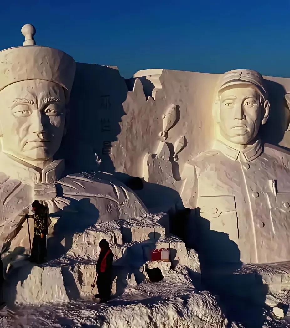 长春把杨靖宇、赵尚志、左权几位抗日英雄直接雕进三米多高的雪里,零下二十度也挡不住