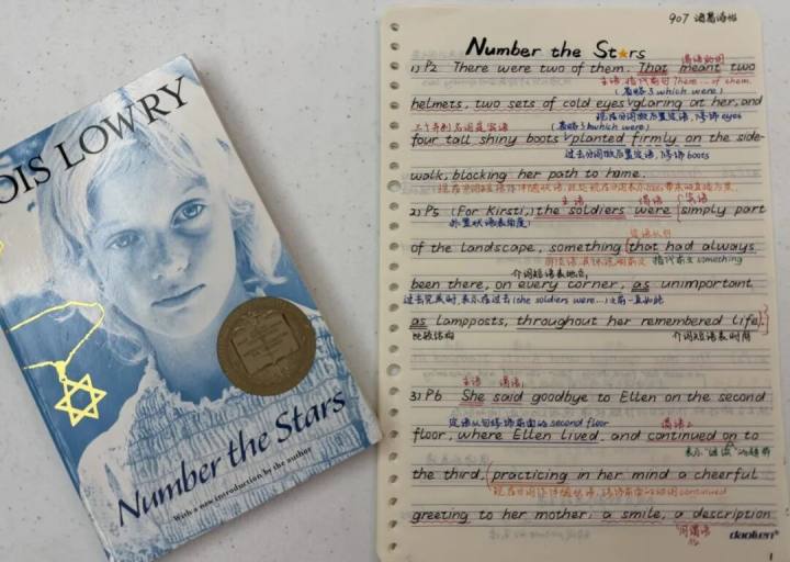 据诗怡妈妈说,她从初一开始看英文原版小说,至今已经看完十多本,包括《NumbertheStars》(《数星星》)、《Wonder》(《奇迹男孩》)、《LittleWomen》(《小妇人》)、《BlackBeauty》(《黑骏马》);《TheRunningDream》(《奔跑的梦想》)、《PrideandPrejudice》(《傲慢与偏见》)、MeBeforeYou;《GreatExpectations》(《远大前程》)、《KiteRunner》(《追风筝的人》)等小说。
