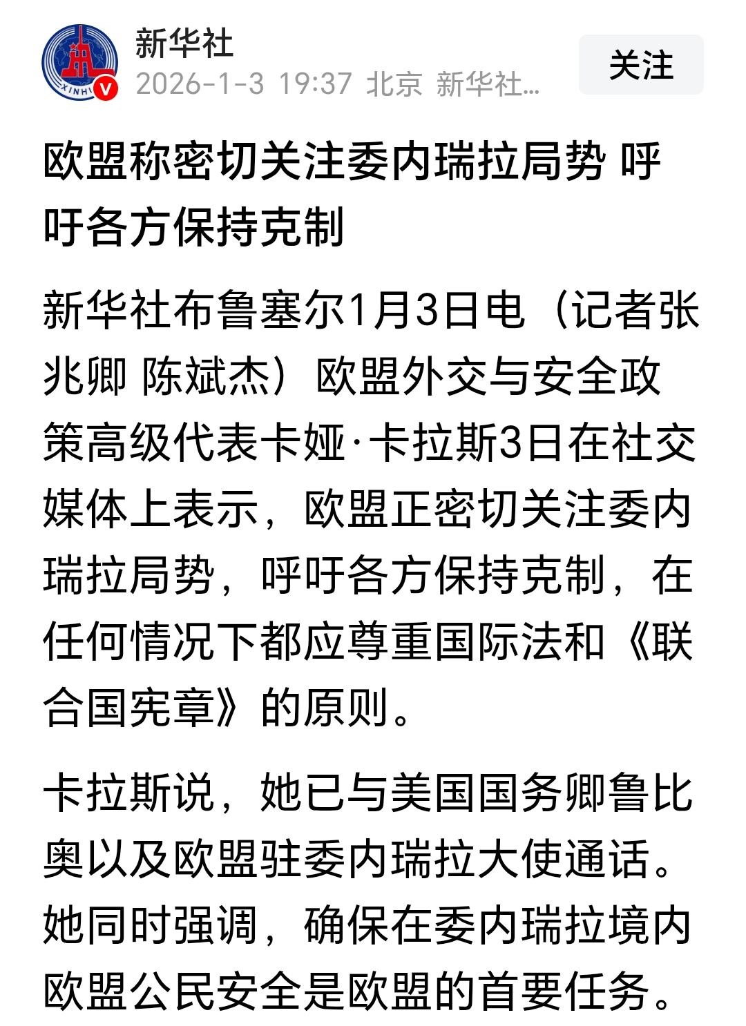 美国派兵抓了马杜罗,这一下就把西方无耻的面具扯烂了。 美国是个文明法制国家。[吐] 欧盟坚持正义爱好和平。[吐] 我们在自己的家里军演他们都要哔哔几句,以展示他们爱好和平。 美国现在赤裸裸的违反国际法,欧盟都装着看不见,甚至都没有一句谴责的话。 你们这么搞,让中国的公知和大殖子们如何帮你洗地?碧浪奥妙汰渍加起来都洗不干净! 还是教员老人家有远见,我们中国人是给世界立规矩的。 你要是想依靠他们给你定的规矩来过上好日子,纯粹做梦,因为在他们眼里,你做的所有的事都是错的。 点右上角关注我,我们一起去看这个魔幻的世界