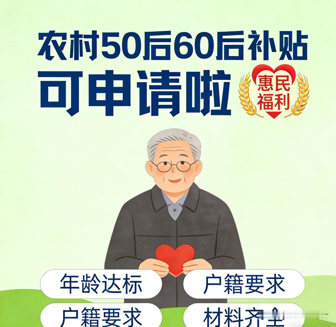 好消息!农村50后60后可办补贴,条件+流程一文说清 2026惠民新政落地,正如“重磅福利!农村50后60后专属补贴,符合条件抓紧申请”所言,农村50后、60后专属补贴正式开放办理,惠及千万农村家庭,这波福利千万别错过! 补贴针对农村户籍群体:50后需年满60周岁,60后需55-59周岁,核心条件为“未享受城镇职工养老保险”,覆盖养老保障、生产扶持等维度。办理可线下冲乡镇政务服务中心,或线上通过“全国政务服务平台”小程序提交申请,需准备身份证、户口本、农村户籍证明等材料。 提醒:各地补贴金额与申请截止时间略有差异,申请前务必核对材料完整性!附详细操作步骤+地区差异说明,帮农村老人省心办补贴。 1. 你身边有符合条件的农村老人吗? 2. 想获取精准办理流程+咨询电话?评论区留“补贴申请”帮你整理! 农村补贴 惠民政策 50后60后福利 农村养老