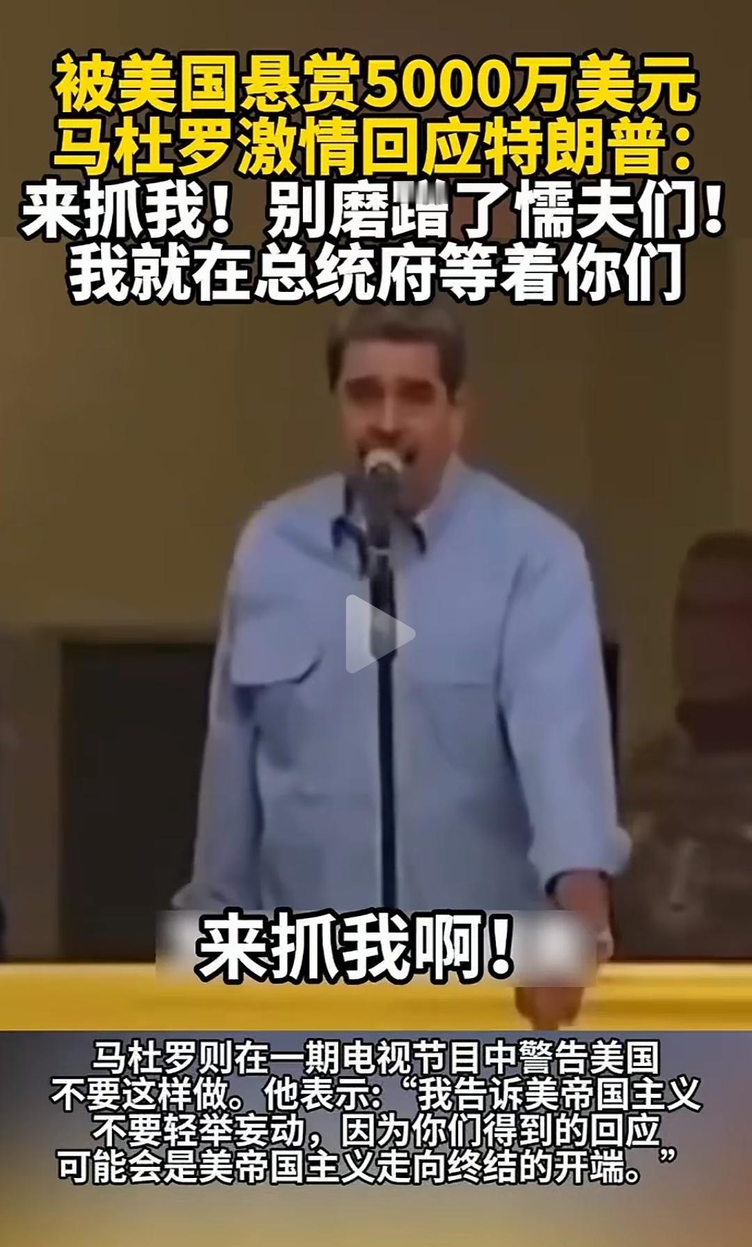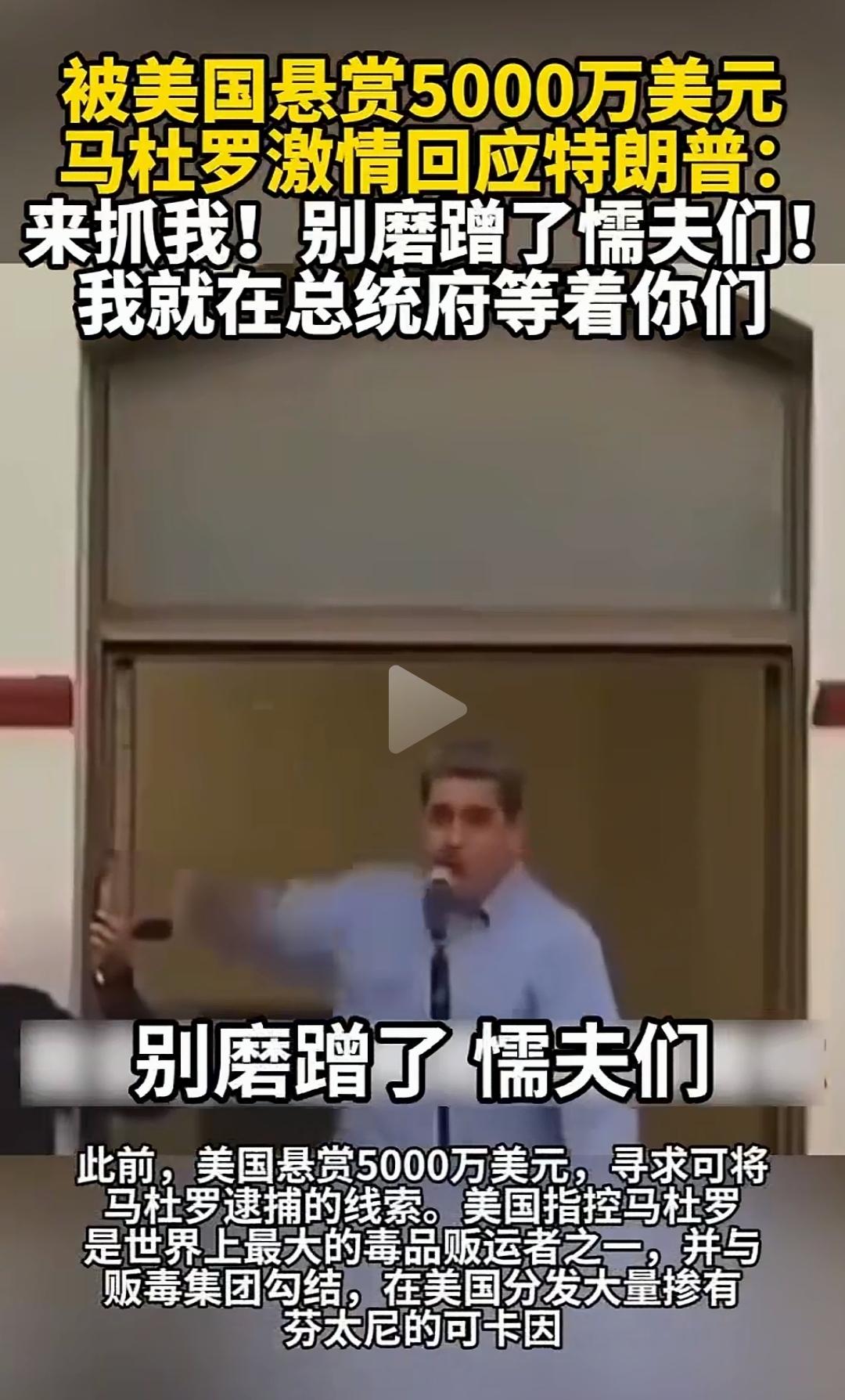 马杜罗大意了,他是行走的5000万美元啊。 美国人可不是懦夫,他们是强盗。 你以为他们讲规则? 不,他们认为自己就是规则。 这次美国这么顺利,没有内奸不可能完成。可见一个国家的内奸危害究竟能有多大。 糟了,我在前一条微头条也喊话美国来抓我,不知道他们来不来,不来的话,我准备洗澡睡觉了。😴 点右上角关注我,我们一起去看这个魔幻的世界