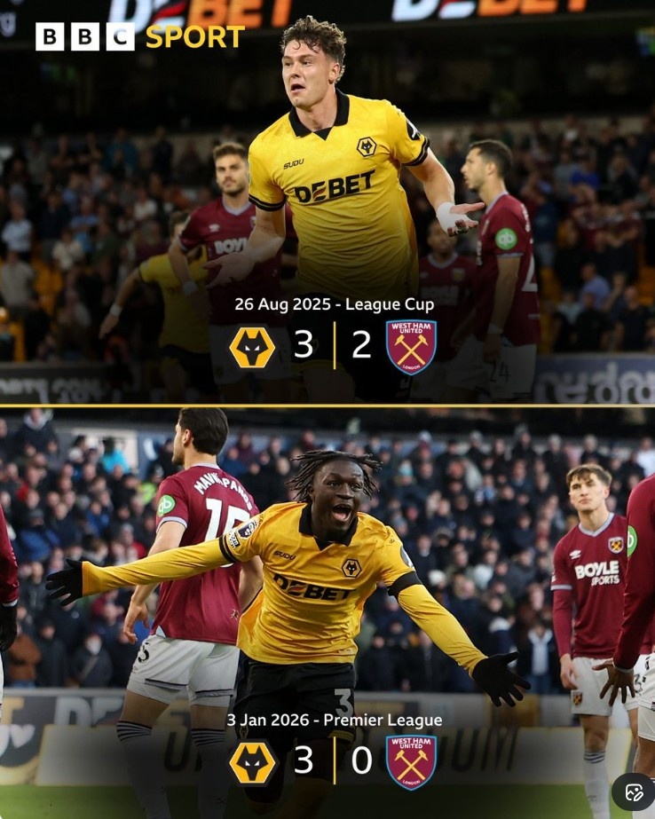 据统计,本赛季狼队各项赛事共计只赢得3场比赛胜利,其中两次是对阵西汉姆,此前球队曾在联赛杯3-2击败对手。