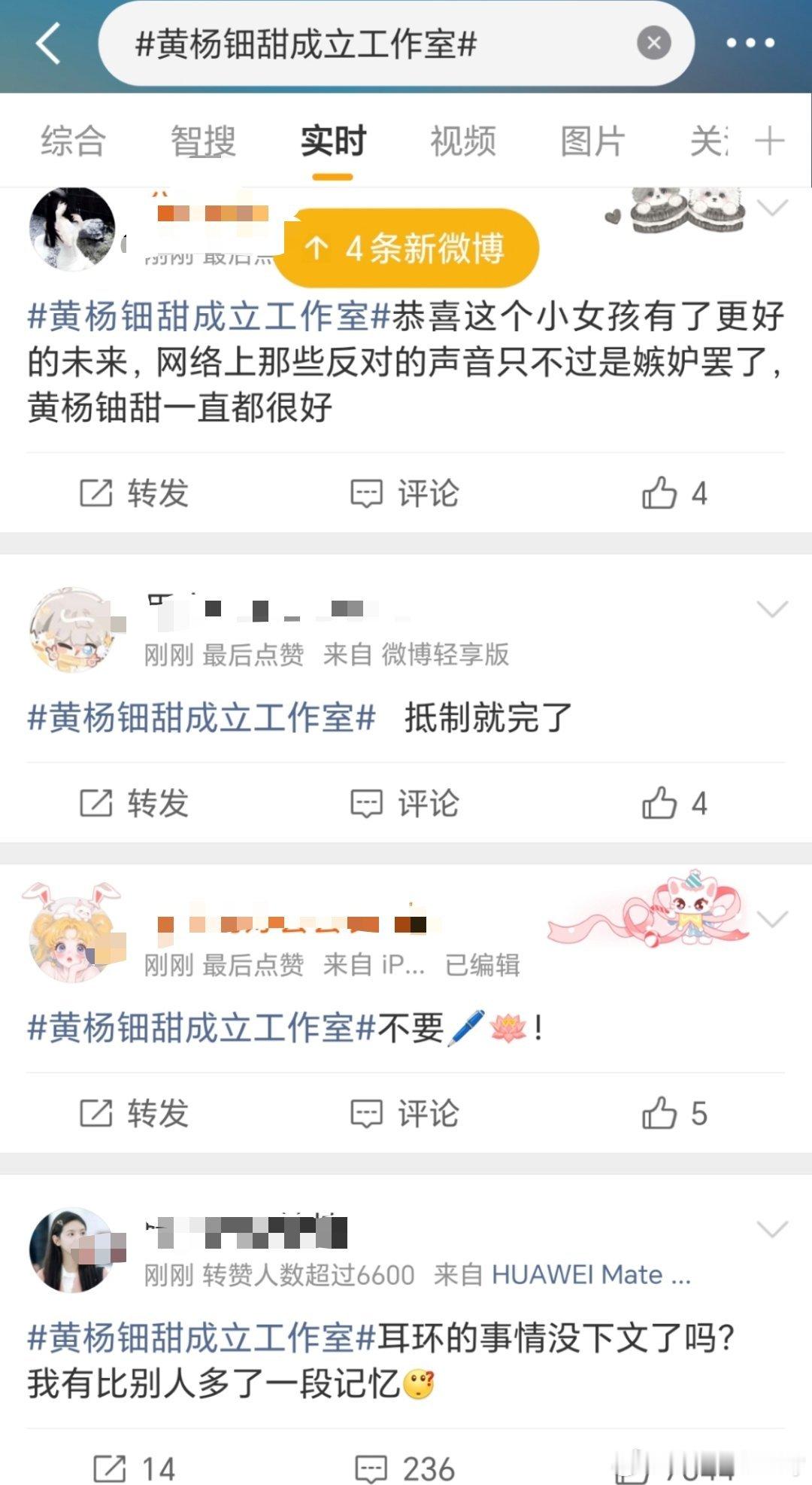 黄杨钿甜成立工作室好家伙,ss里面都在抵制和黄杨钿甜,有人还问耳环的事有没有后续