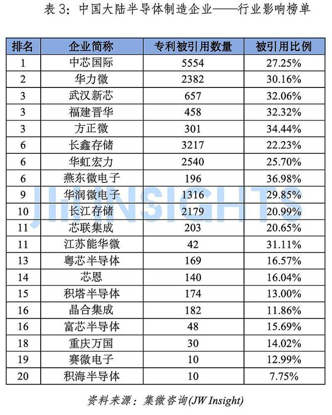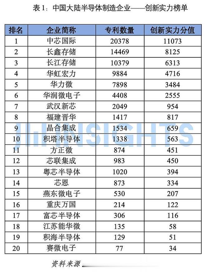 中国大陆半导体制造企业——创新实力榜单