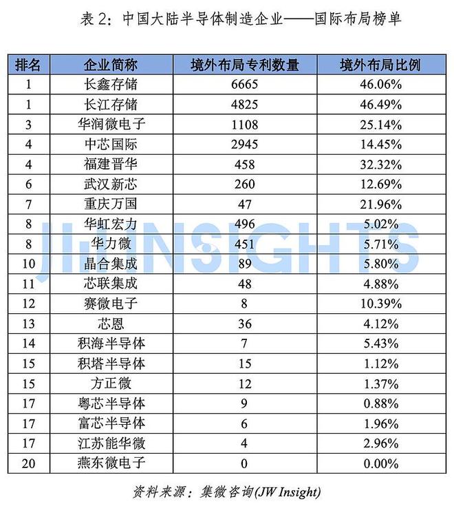 中国大陆半导体制造企业——国际布局榜单