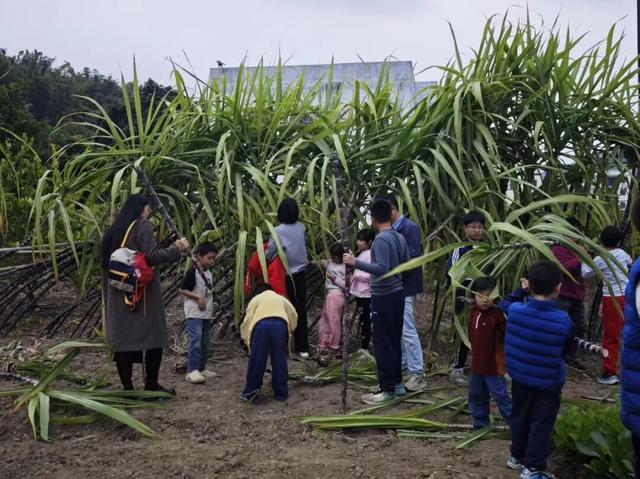 活动中,基地老师首先介绍了活动流程和核心亮点,随后老师带领家长和孩子们走进田间地头开展阡陌赛跑、砍甘蔗、摘青菜等活动,让孩子们走出课堂,走进自然,亲身体验农耕文化,近距离感受丰收的喜悦与劳动的艰辛,进一步激发他们对大自然的热爱和对传统农耕文化的尊重。