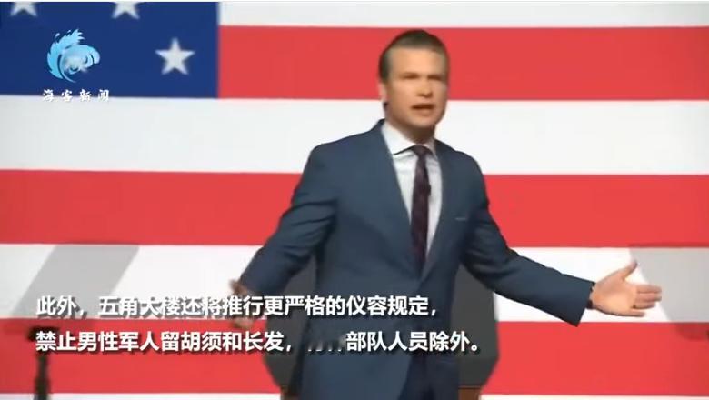 美军士兵的奇特关注点,委美冲突 发布会上的MD战争部长的鬓角不符合他去年在全军将