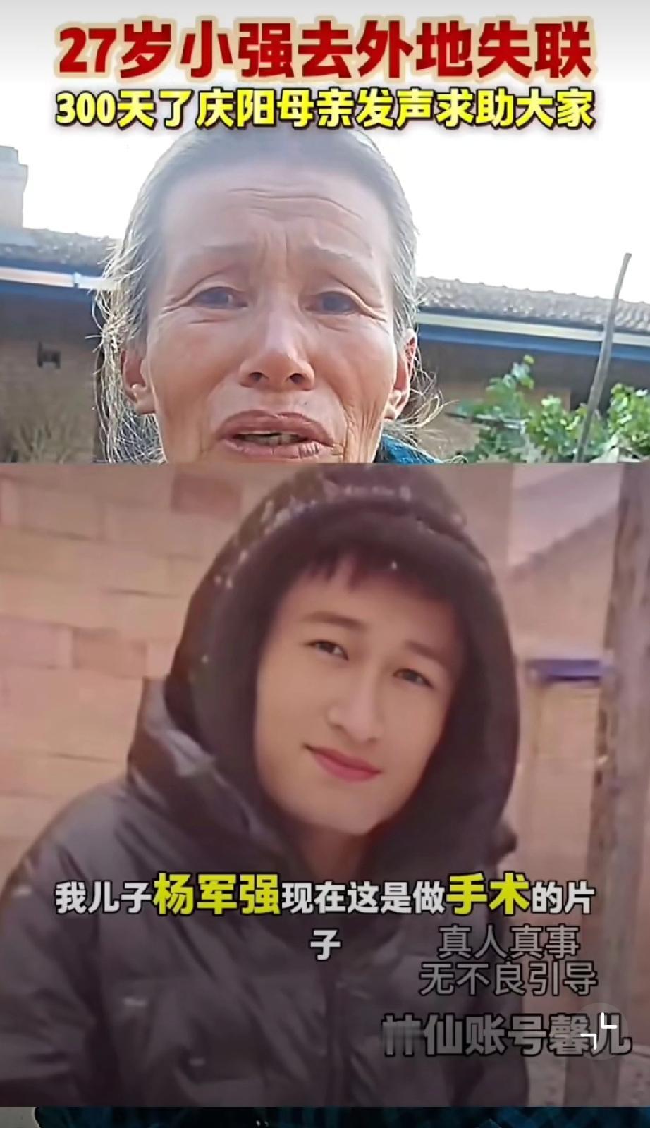 甘肃庆阳无助母亲寻儿,请大家帮忙扩散让爱回家。杨军强28岁,1.76米,2024年12月2日失联。 这位母亲说儿子手臂骨折了,她发声很久了笔者尚未查到新闻报道此事,很可怜(来源: 寻找儿子、神仙帐号馨儿)。寻找儿子 庆阳寻亲 失联儿子