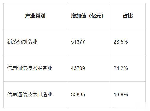 信息通信技术服务业(24.2%)已接近新装备制造业的体量。