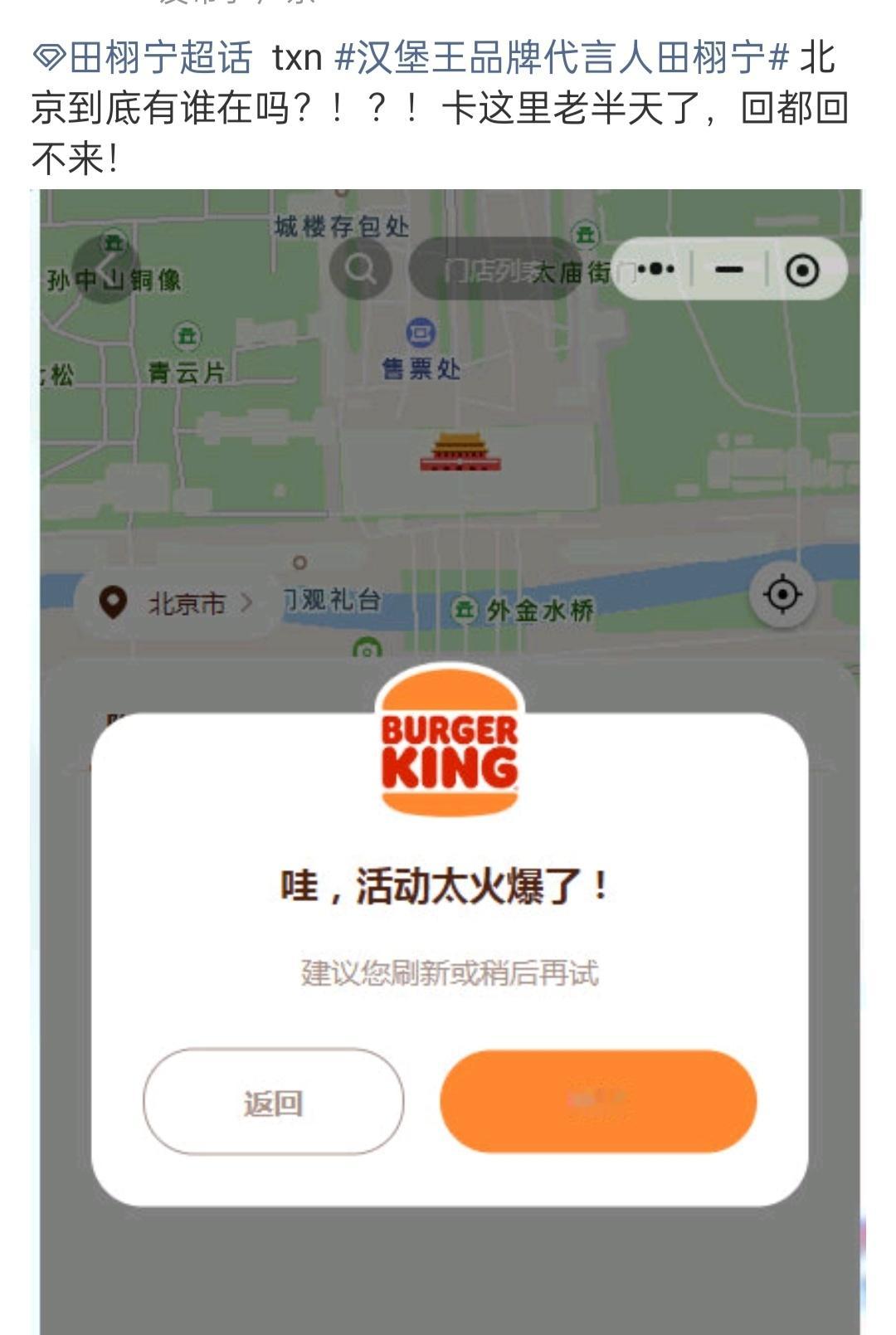 汉堡王北京到底有谁在啊田栩宁元旦礼盒今日10:00开售前直接崩了❗汉堡王:公司扩容了,但人还是太多了~都给大家定位到北京去了北京到底有谁在啊 汉堡王扩容了但人还是太多了田栩宁 汉堡王