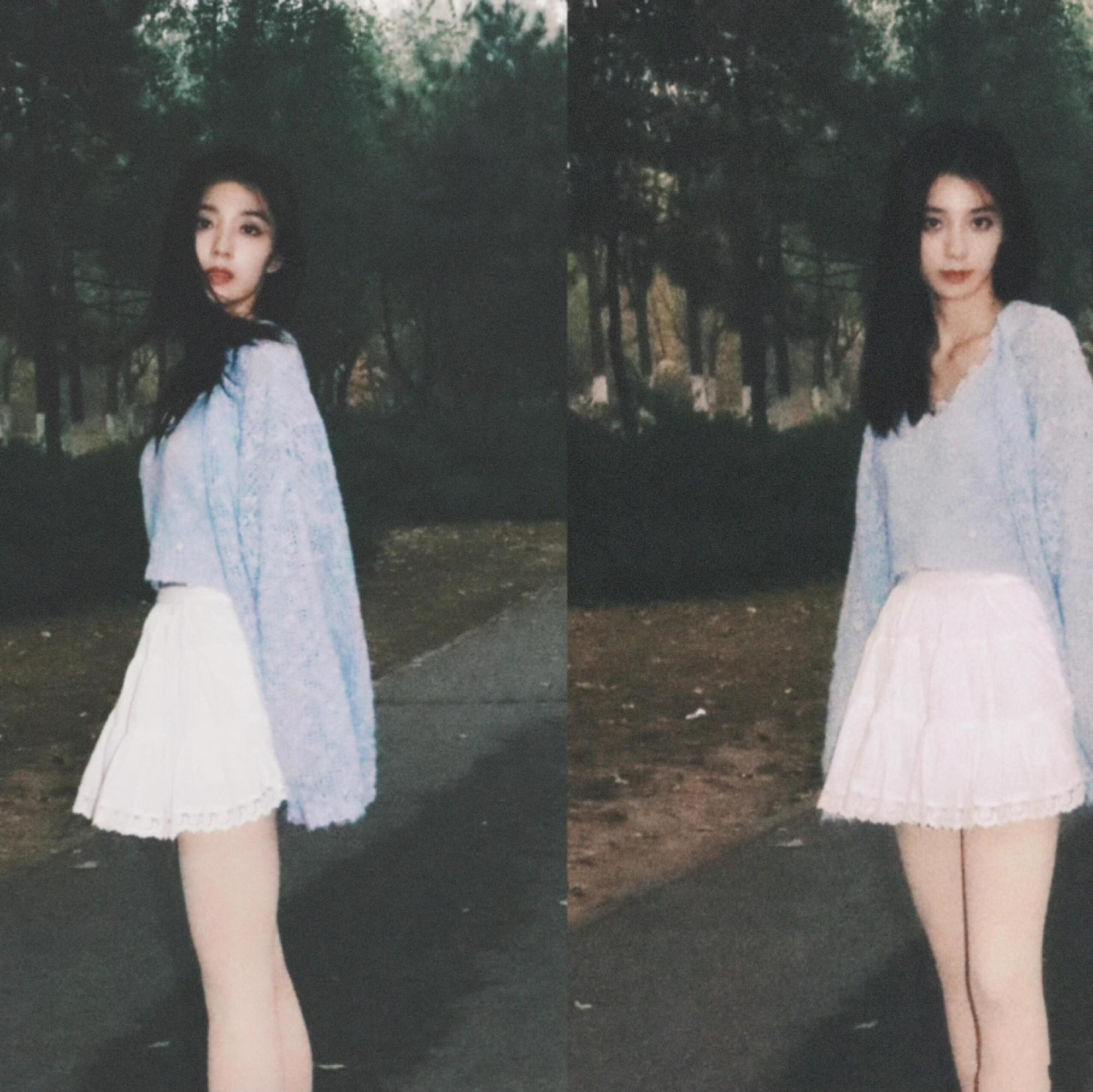 万鹏白色小短裙美腿妆造,是温柔少女的模样。万鹏