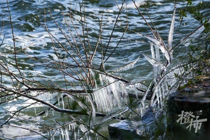 橙友天蝎园儿说:“降温后温度一度下降,湖水打在苏堤的一棵树上,形成了漂亮的冰锥。”