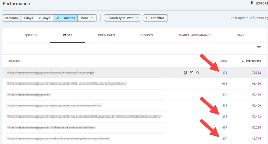 6.获取更多指向您网站其他页面的链接。假设您已经从各种来源获得了一些优质的反向链接,其中大部分指向您的首页。这当然是好事,而且在力所能及的范围内,您应该继续将大部分链接指向您的首页。但并非所有链接都指向首页。时不时地,将您辛苦获得的反向链接指向一些有潜力或优先级较高的“服务”页面、“城市”页面,或者您认为如果提升排名可能会有所改善的其他页面。如果您不知道从何入手,可以进入GoogleSearchConsole,查找那些展示次数高但点击次数低的页面。这些页面或许只需一个高质量的反向链接就能有所提升。